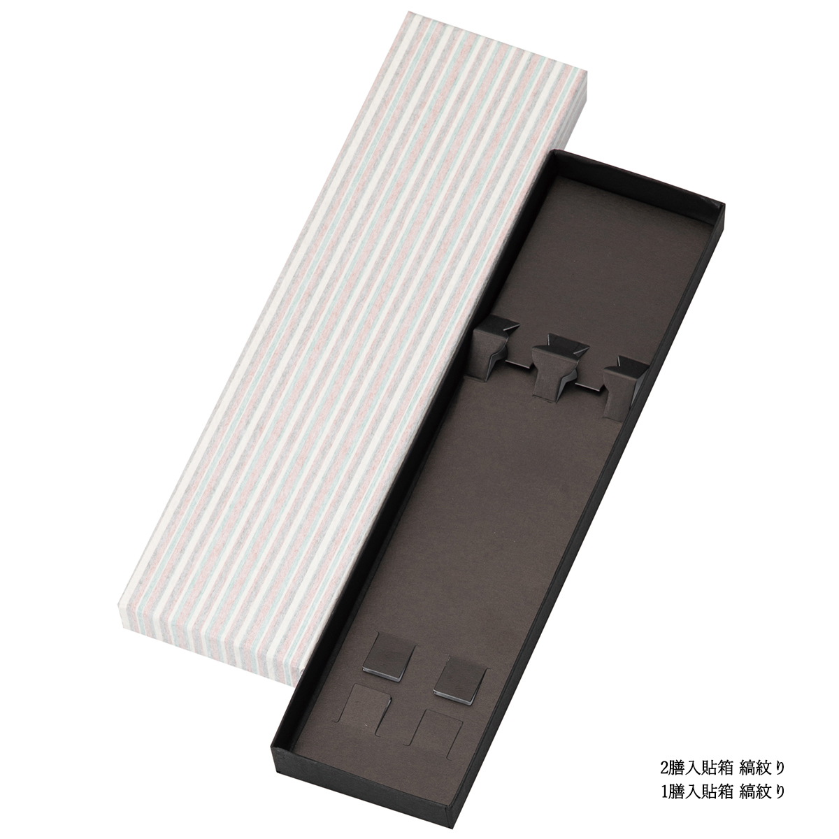 お箸に合わせてデザインを選べる。上質な紙の質感を感じていただける貼箱。