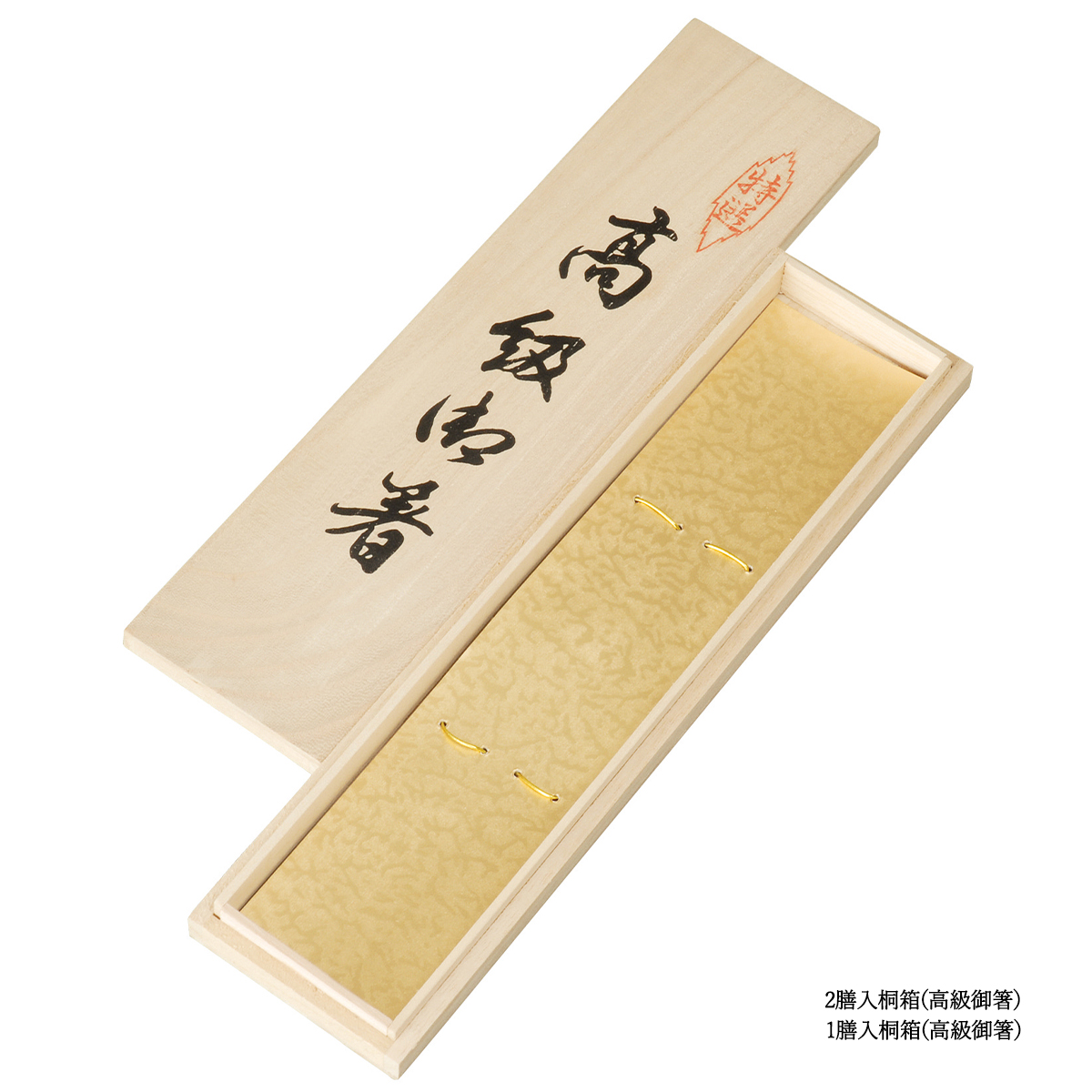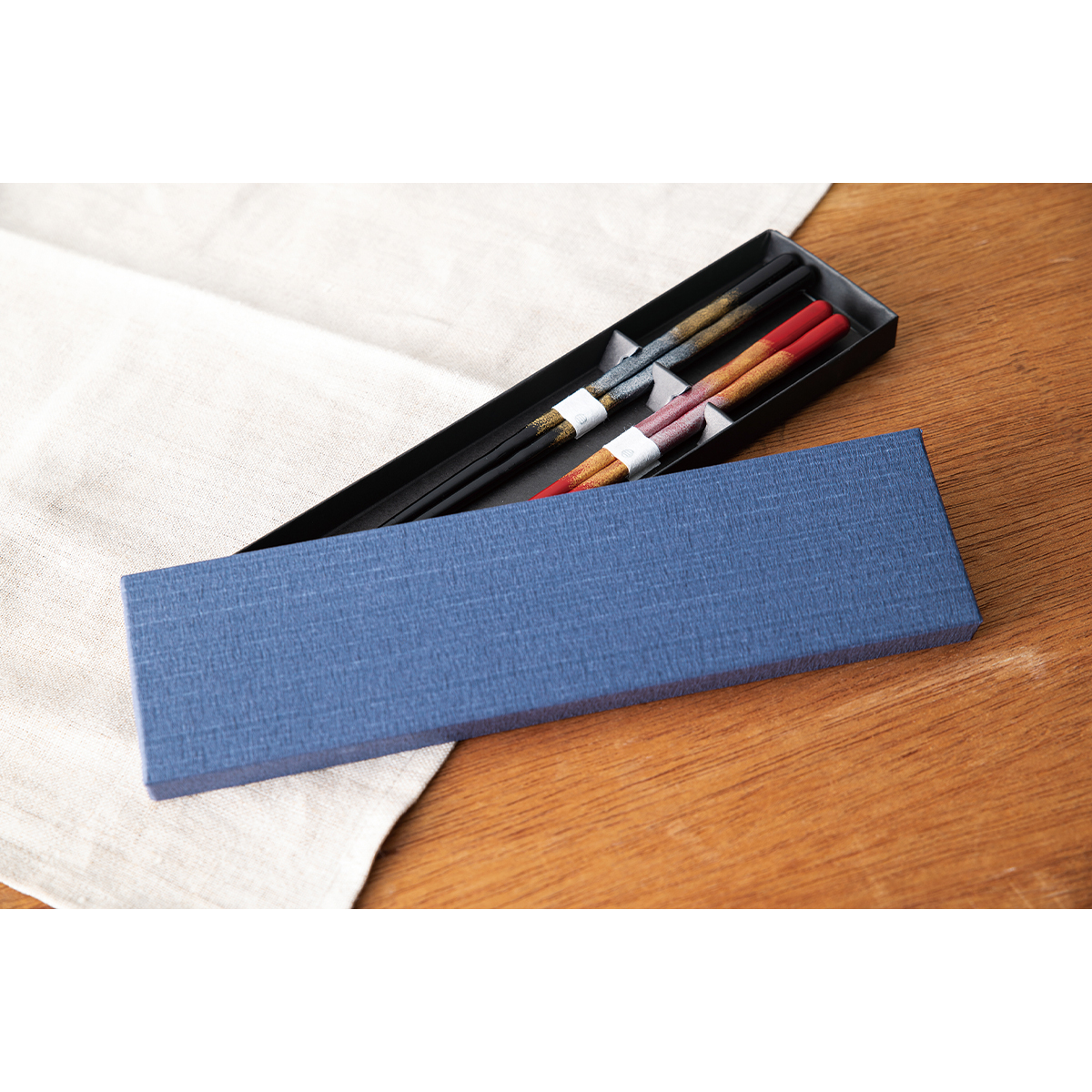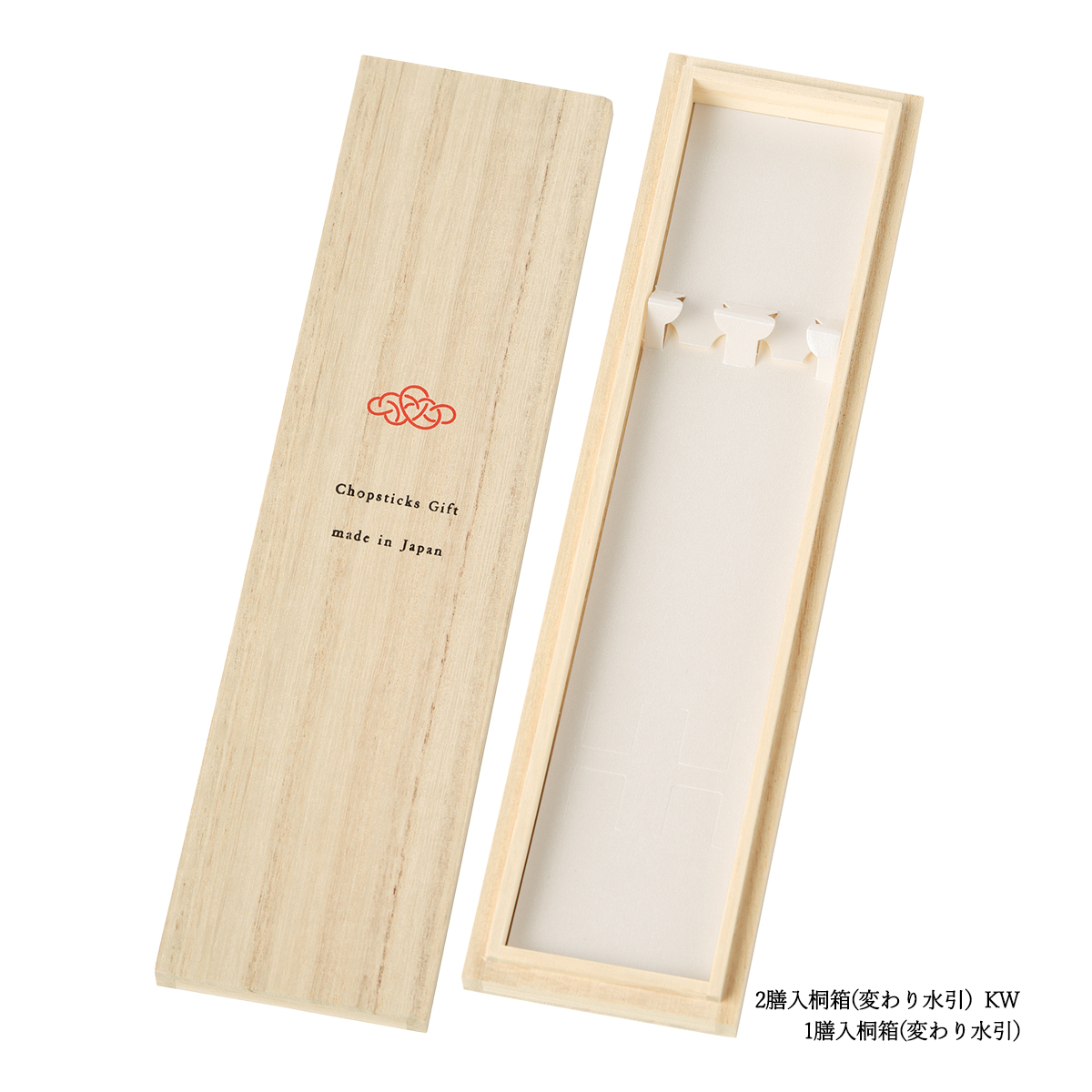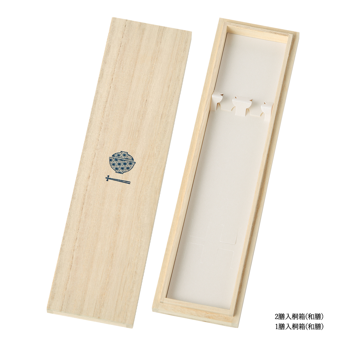 高級感漂う桐箱タイプ。ワンランク上の贈り物に、オススメのアイテムです。お箸に合わせてデザインを選べる。上質な紙の質感を感じていただける貼箱。