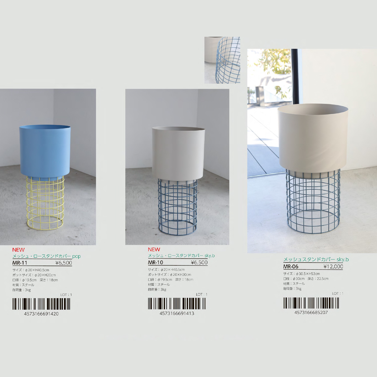 | サイズ | MR-06 メッシュスタンドカバー sky.b : W30.5×H53 MR-10 メッシュ・ロースタンドカバー sky.b : W20×H40.5 MR-11 メッシュ・ロースタンドカバー pop : W20×H40.5 |