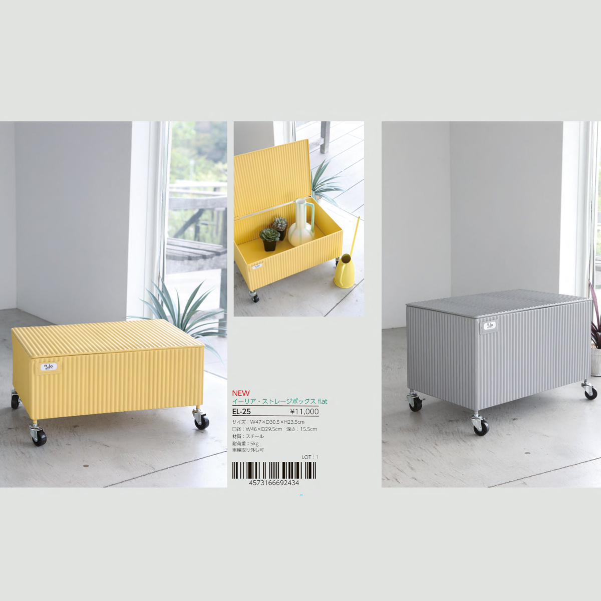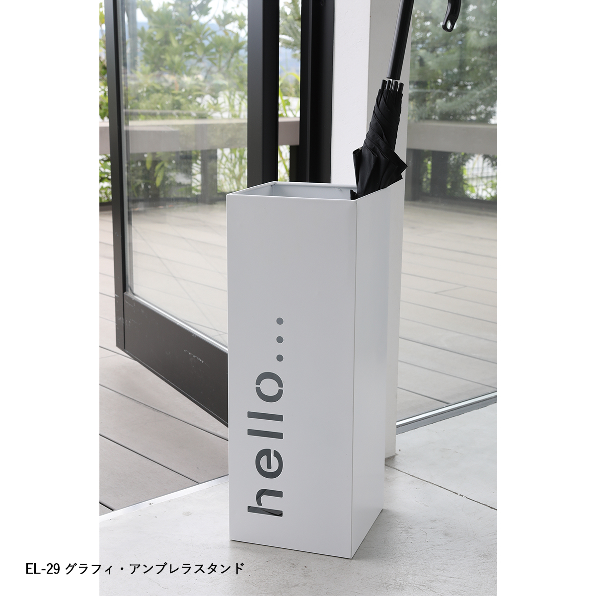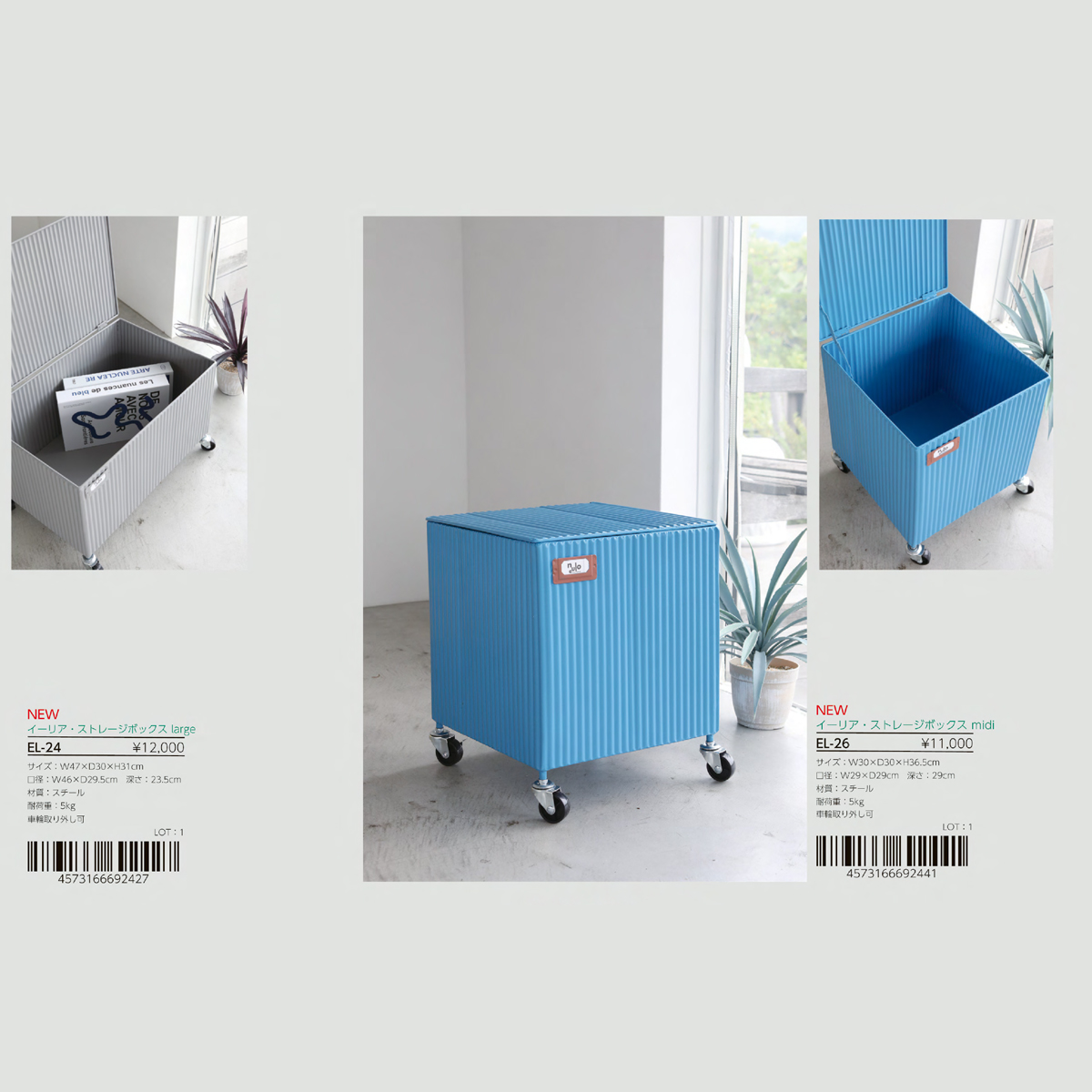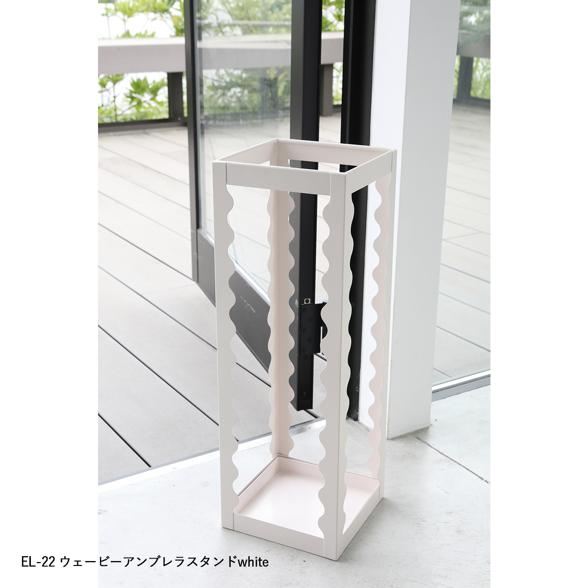 | サイズ | EL-25 イーリア・ストレージボックス flat : W47×D30.5×H23.5 EL-22 ウェービーアンブレラスタンドwhite : W18.5×D18.5×H55 EL-24 イーリア・ストレージボックス large : W47×D30×H31 EL-26 イーリア・ストレージボックス midi : W30×D30×H36.5 EL-29 グラフィ・アンブレラスタンド : W19.5×D19.5×H52 |