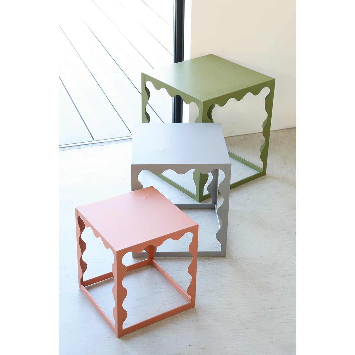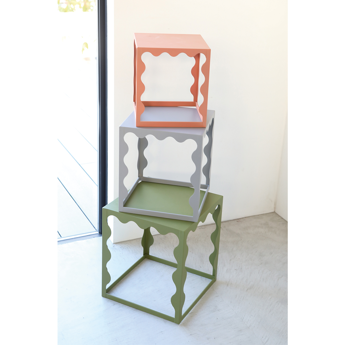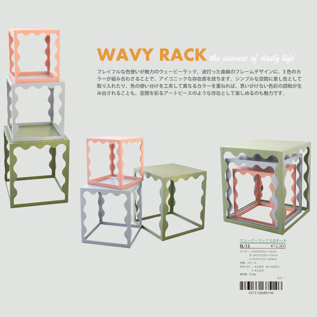インテリアのアクセントにもなるウェービーラック3点セットです。