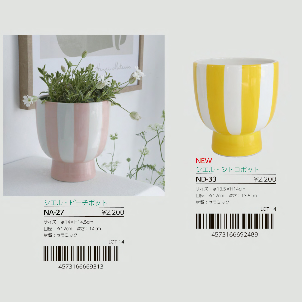 | サイズ | NA-27 シエル・ピーチポット : W14×H14.5 ND-33 シエル・シトロポット : W13.5×H14 |