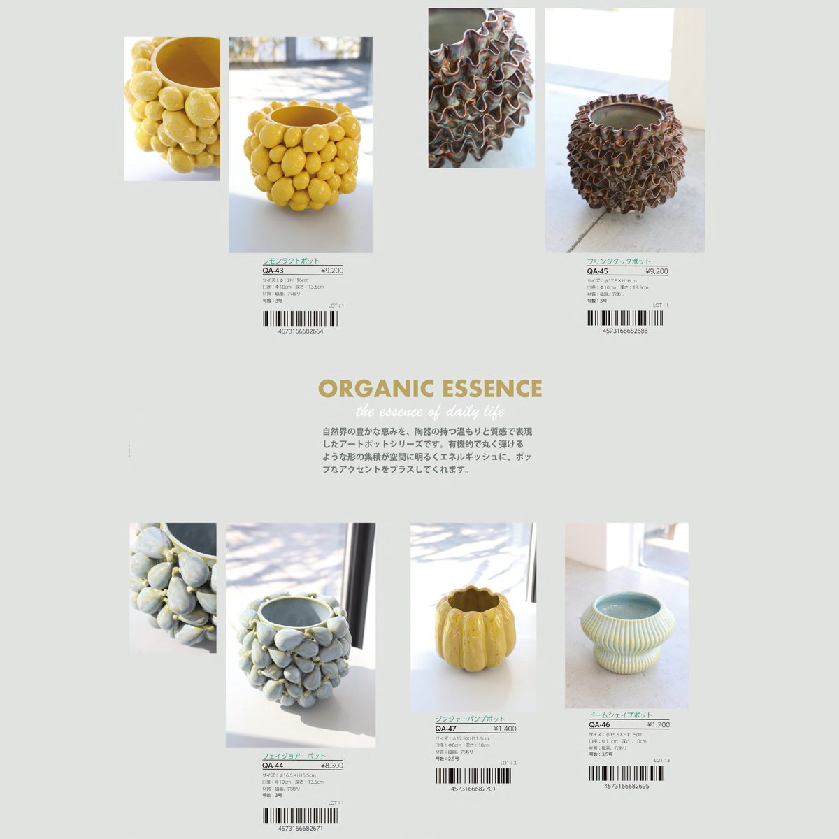 自然界の豊かな恵みを、陶器の持つぬくもりと質感で表現したアートポットシリーズです。