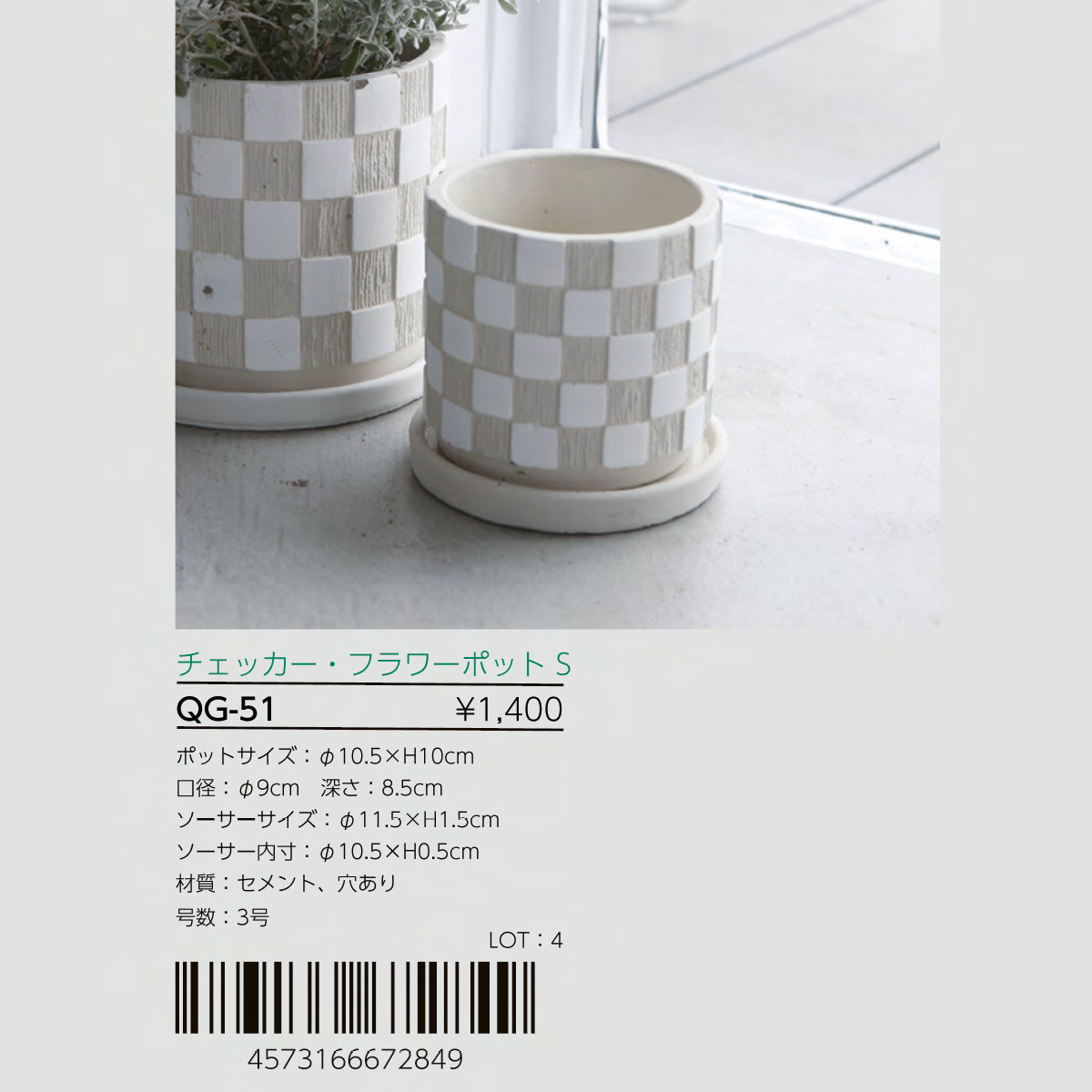 | サイズ | QG-51 チェッカー・フラワーポットS : W10.5×H10 |
