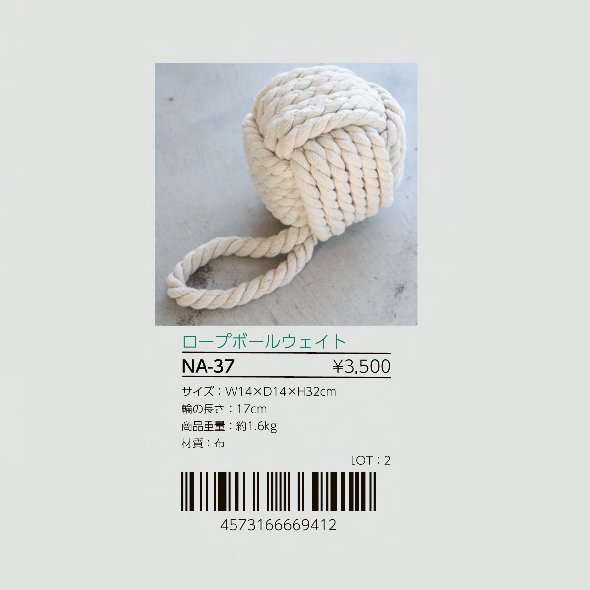 インテリアのアクセントになるロープボールウェイトです。