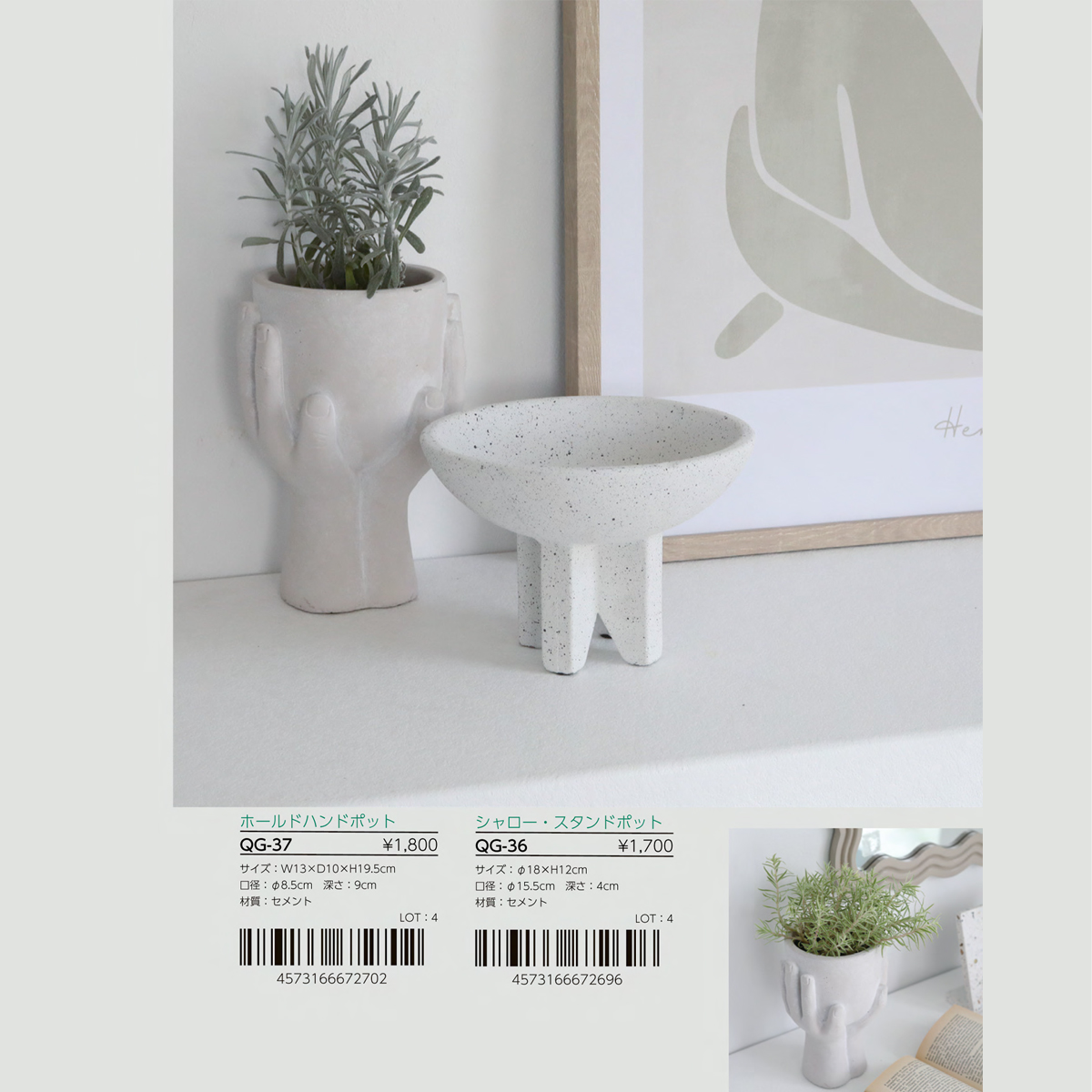 | サイズ | QG-36 シャロー・スタンドポット : W18×H12 QG-37 ホールドハンドポット : W13×D10×H19.5 |