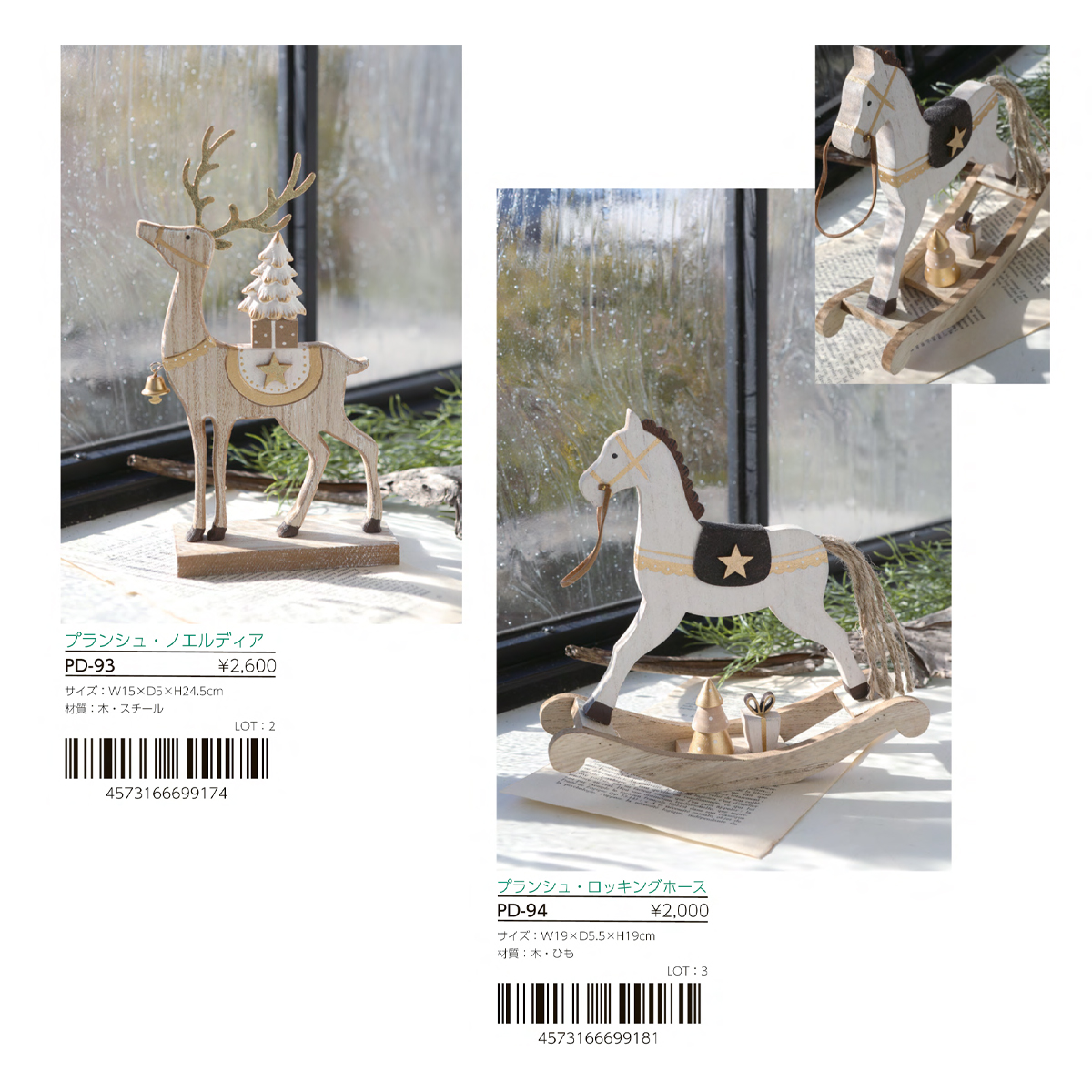 | サイズ | PD-93 プランシュ・ノエルディア : W15×D5×H24.5 PD-94 プランシュ・ロッキングホース : W19×D5.5×H19 |