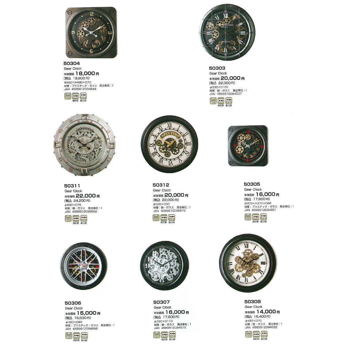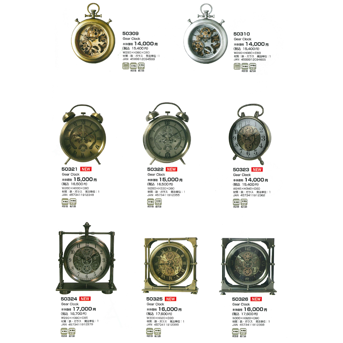 | 素材 | 【50304・50305・50306】 プラスチック・ガラス 【50303・50307・50308・50309・50310・50311・50312・50321・50322・50323・50324・50325・50326】 鉄・ガラス |