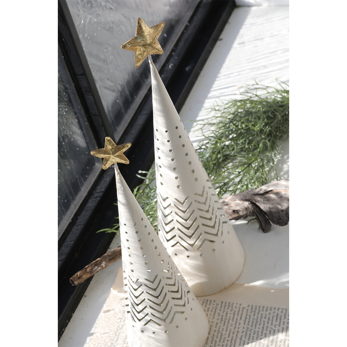 幾何学模様の切り抜きが美しいスチール製ライトアップツリーです。点灯すると温かな光が広がるクリスマスインテリア小物です。単4電池2本使用(電池別売)。