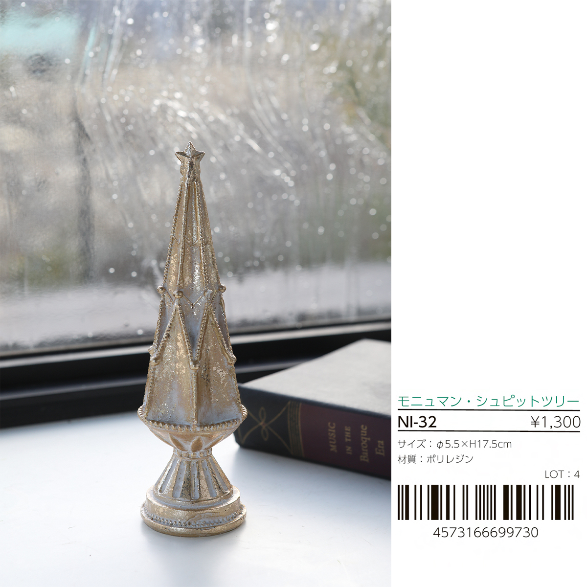 ポリレジン製のゴールドカラーのクリスマスツリー置き飾りです。