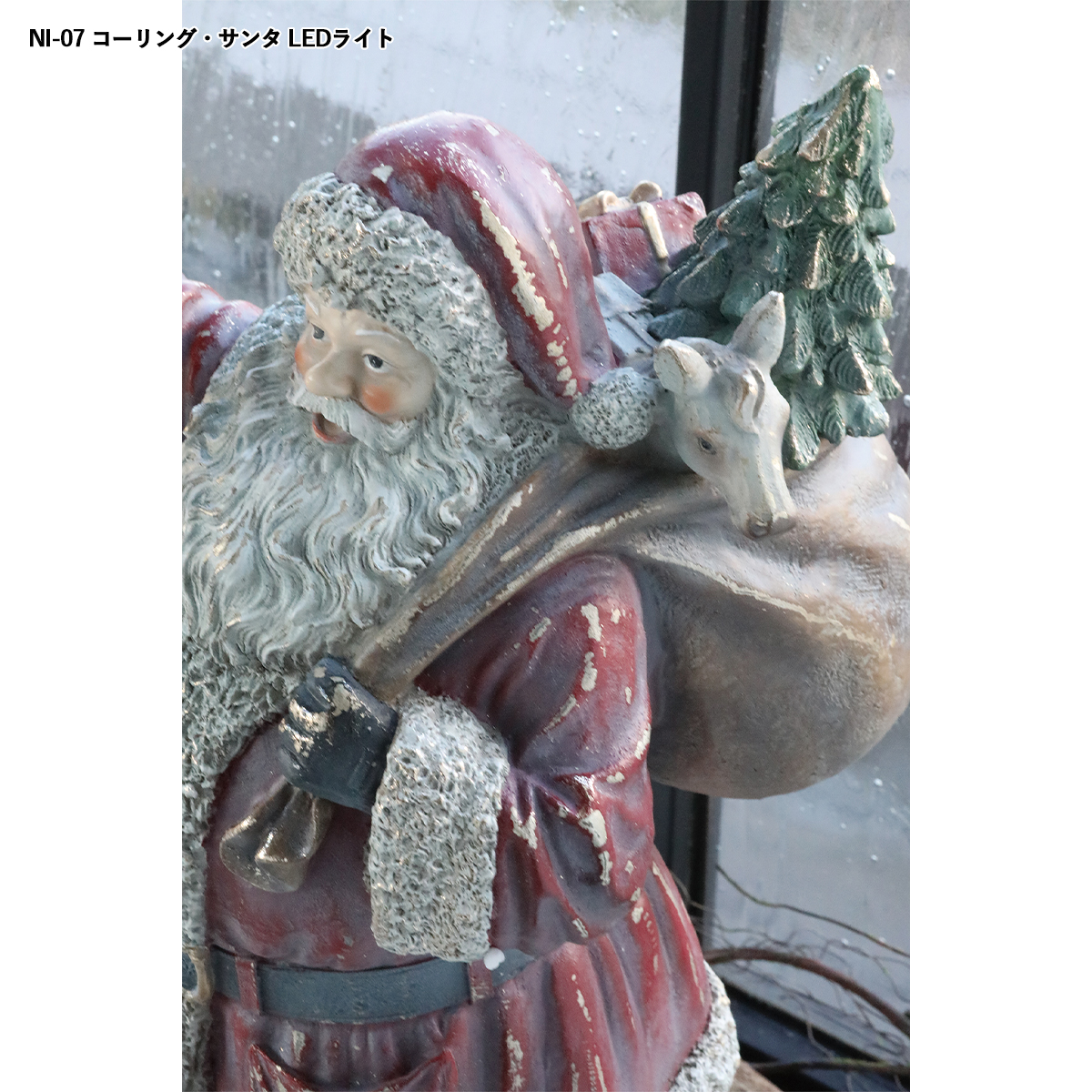 【クリスマス】コーリング・サンタ LEDライト&ブロンズエルク・ビロウ 置物