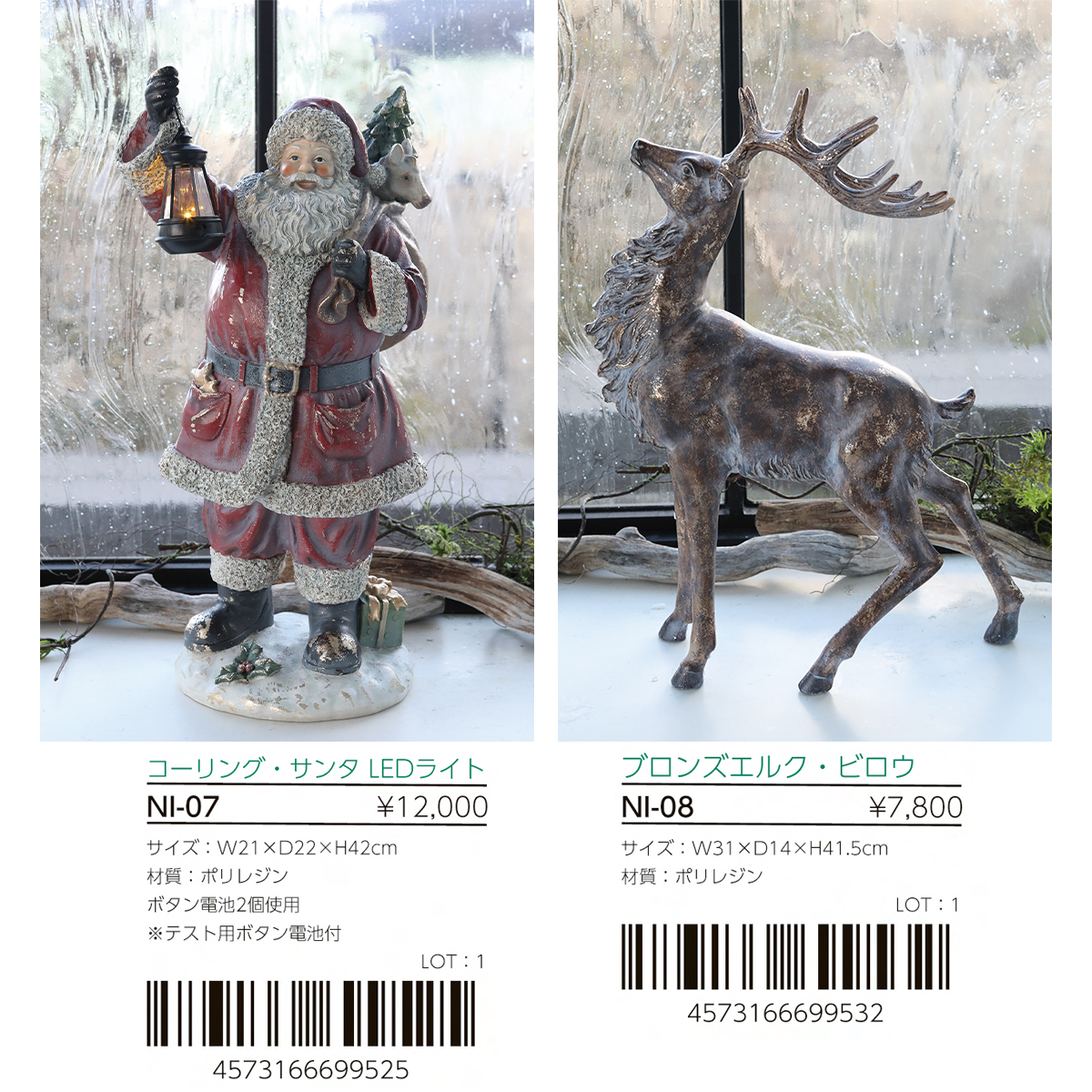 | サイズ | コーリング・サンタ:W21×D22×H42cm ブロンズエルク・ビロウ:W31×D14×H41.5cm |