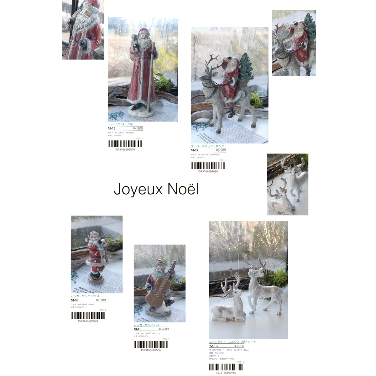 サンタクロースやエルクの置き飾りです。