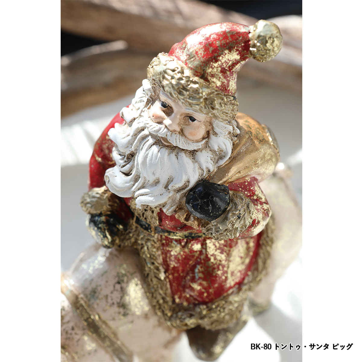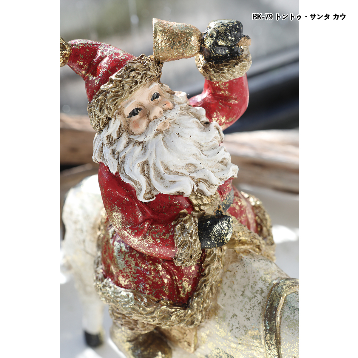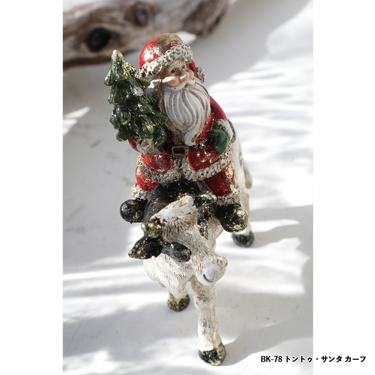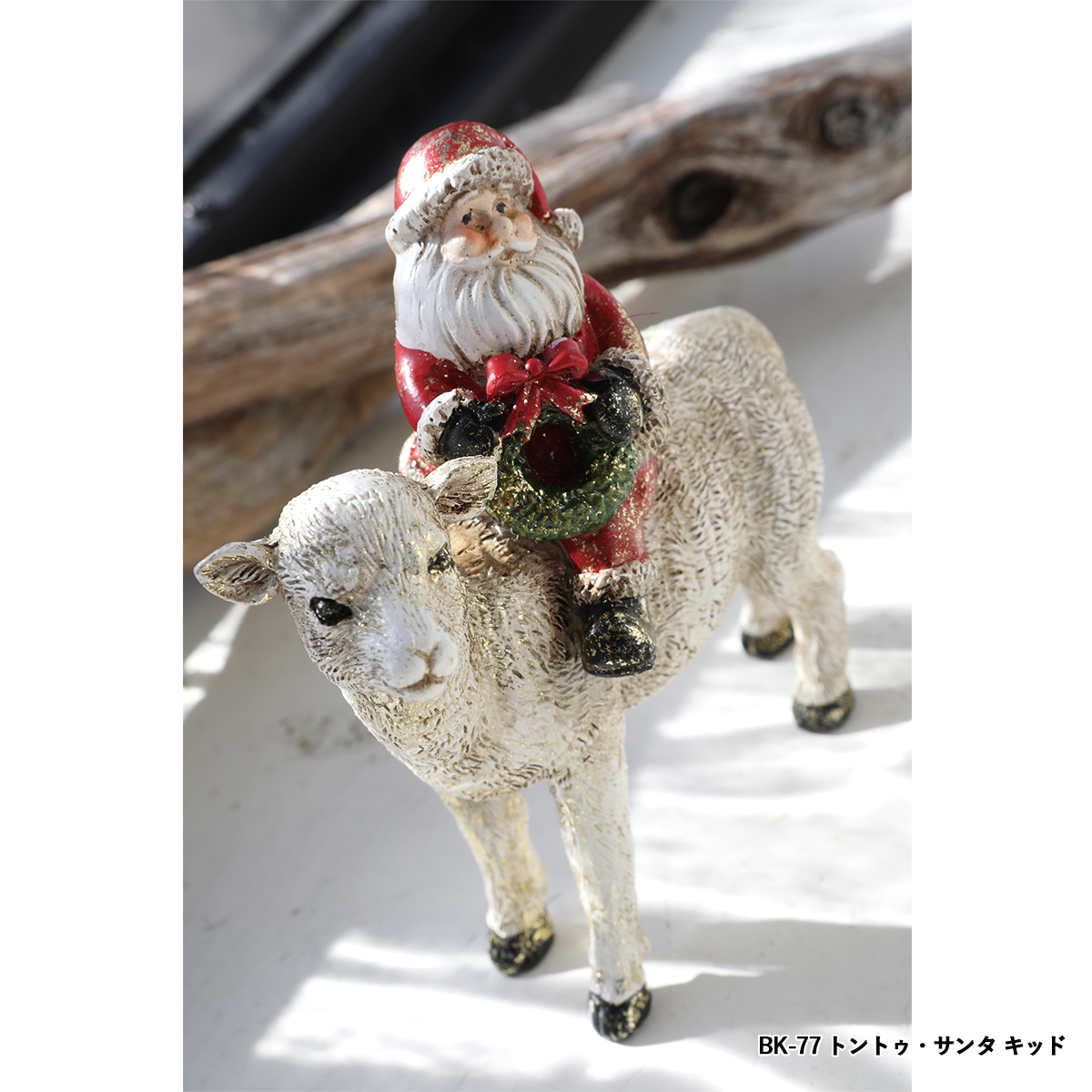 ポリレジン製の動物に乗るサンタクロースの置き飾りです。