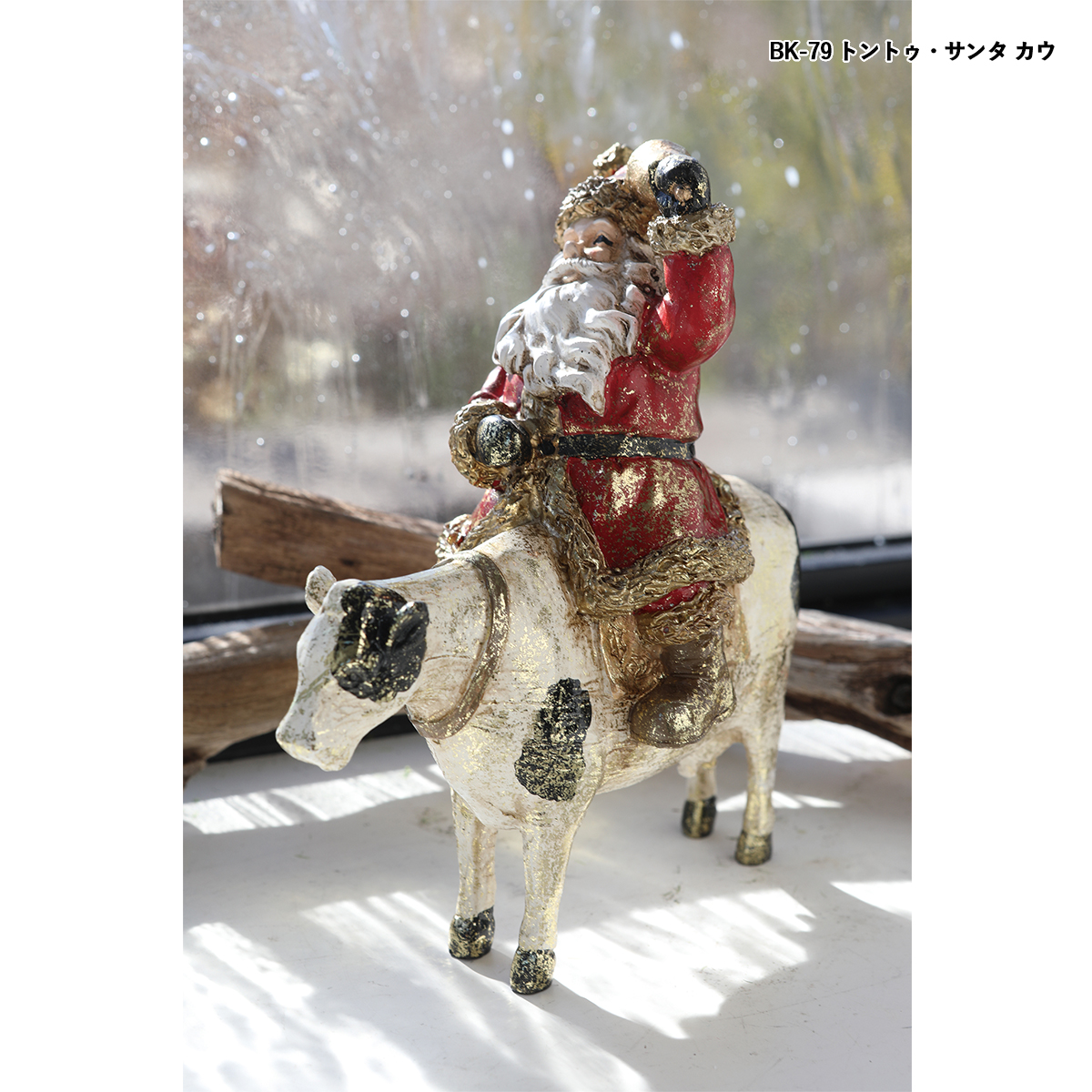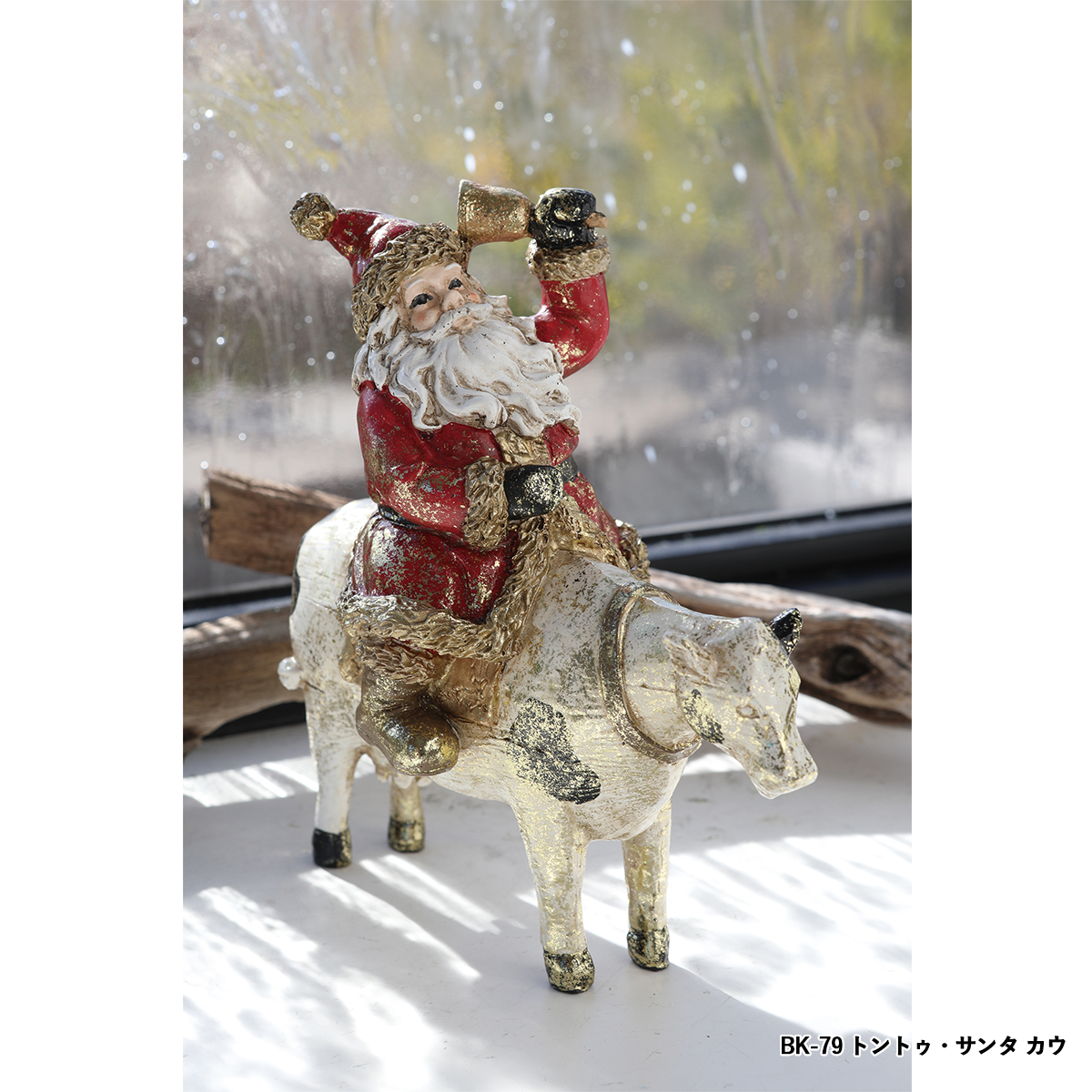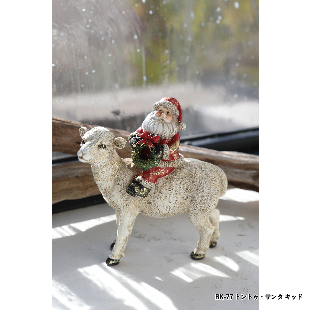 ポリレジン製の動物に乗るサンタクロースの置き飾りです。