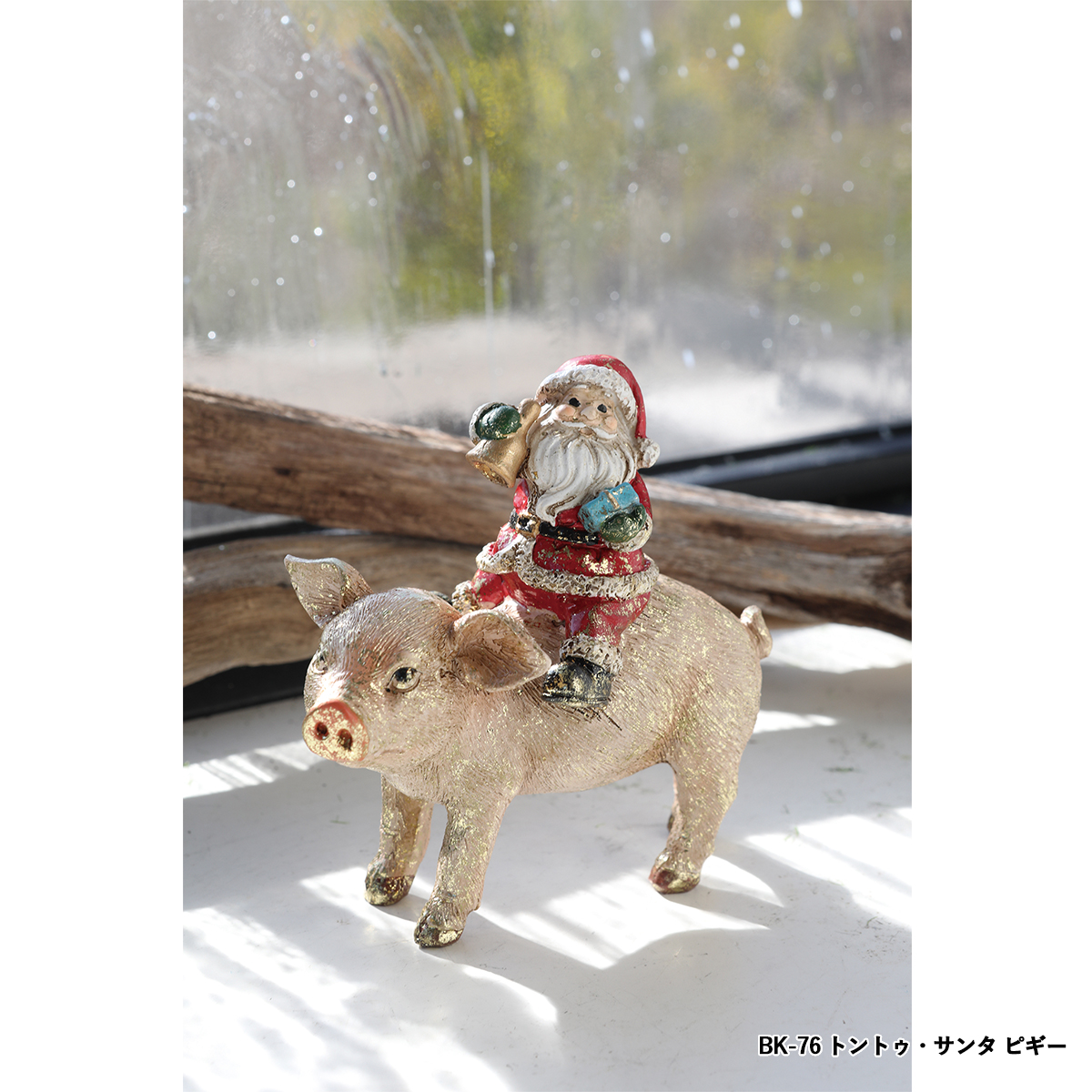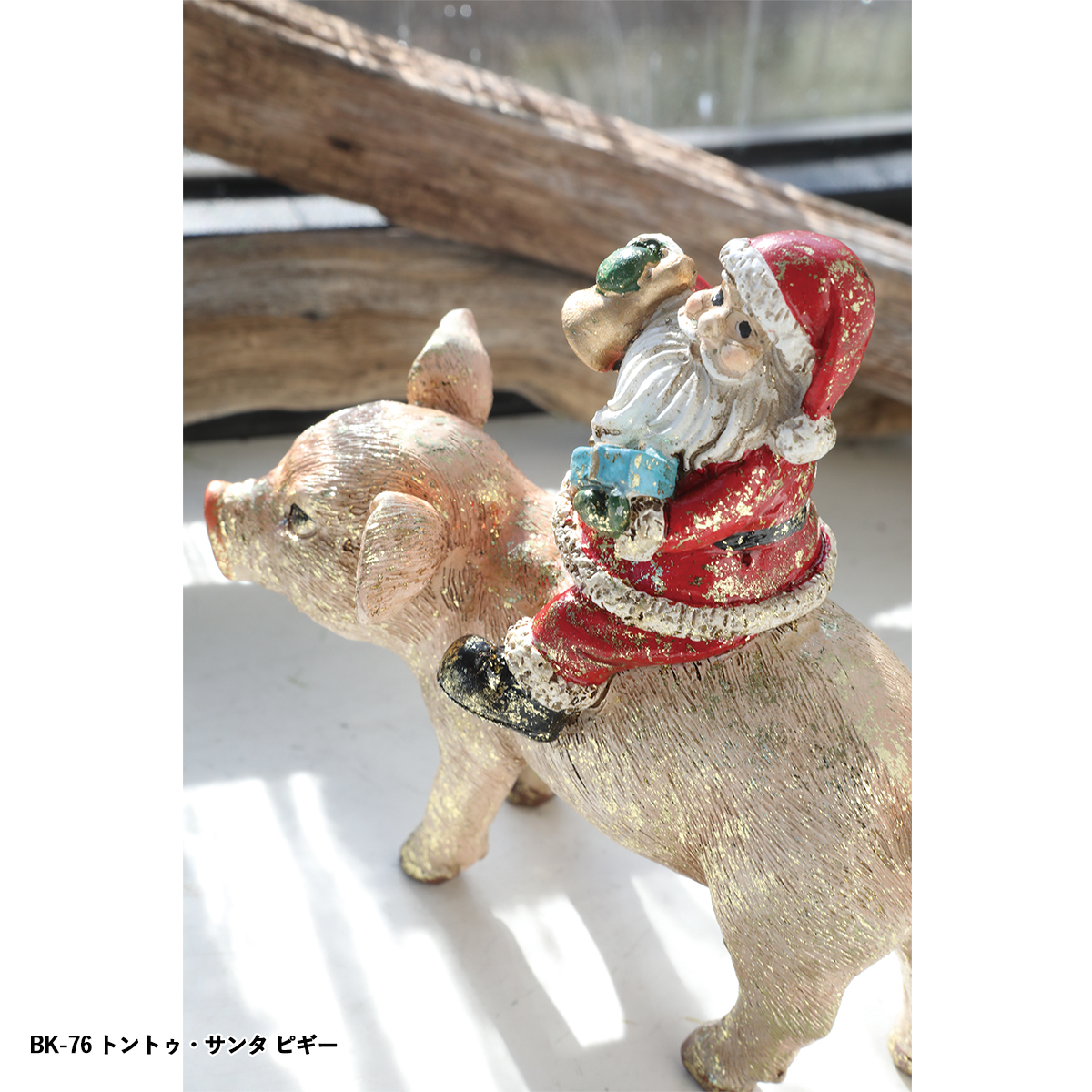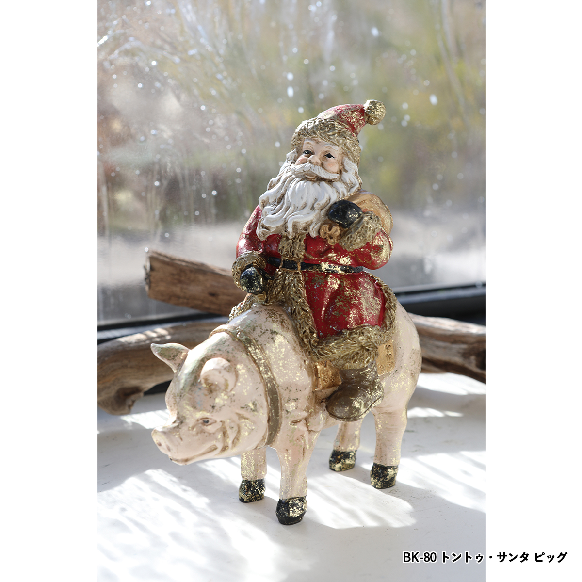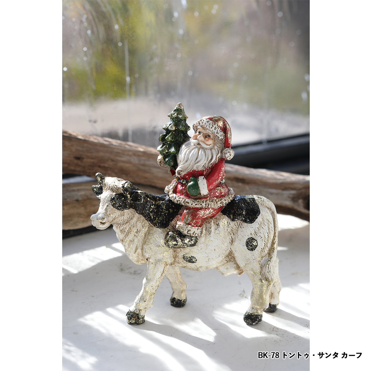 ポリレジン製の動物に乗るサンタクロースの置き飾りです。