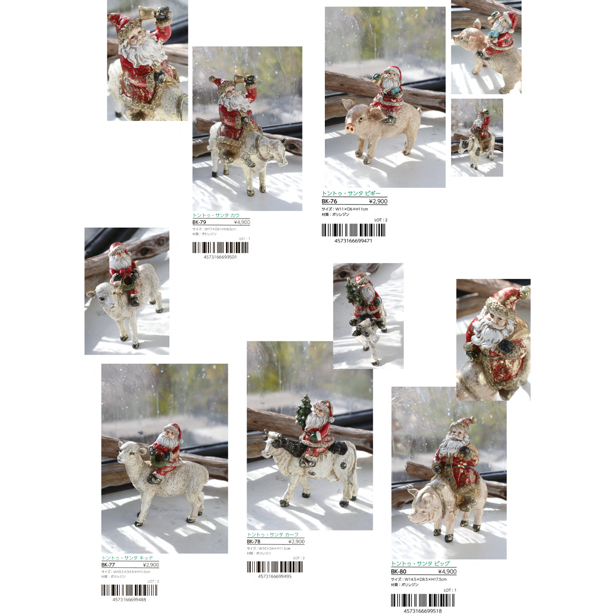 【クリスマス】トントゥ・サンタ 動物 インテリア雑貨 置物