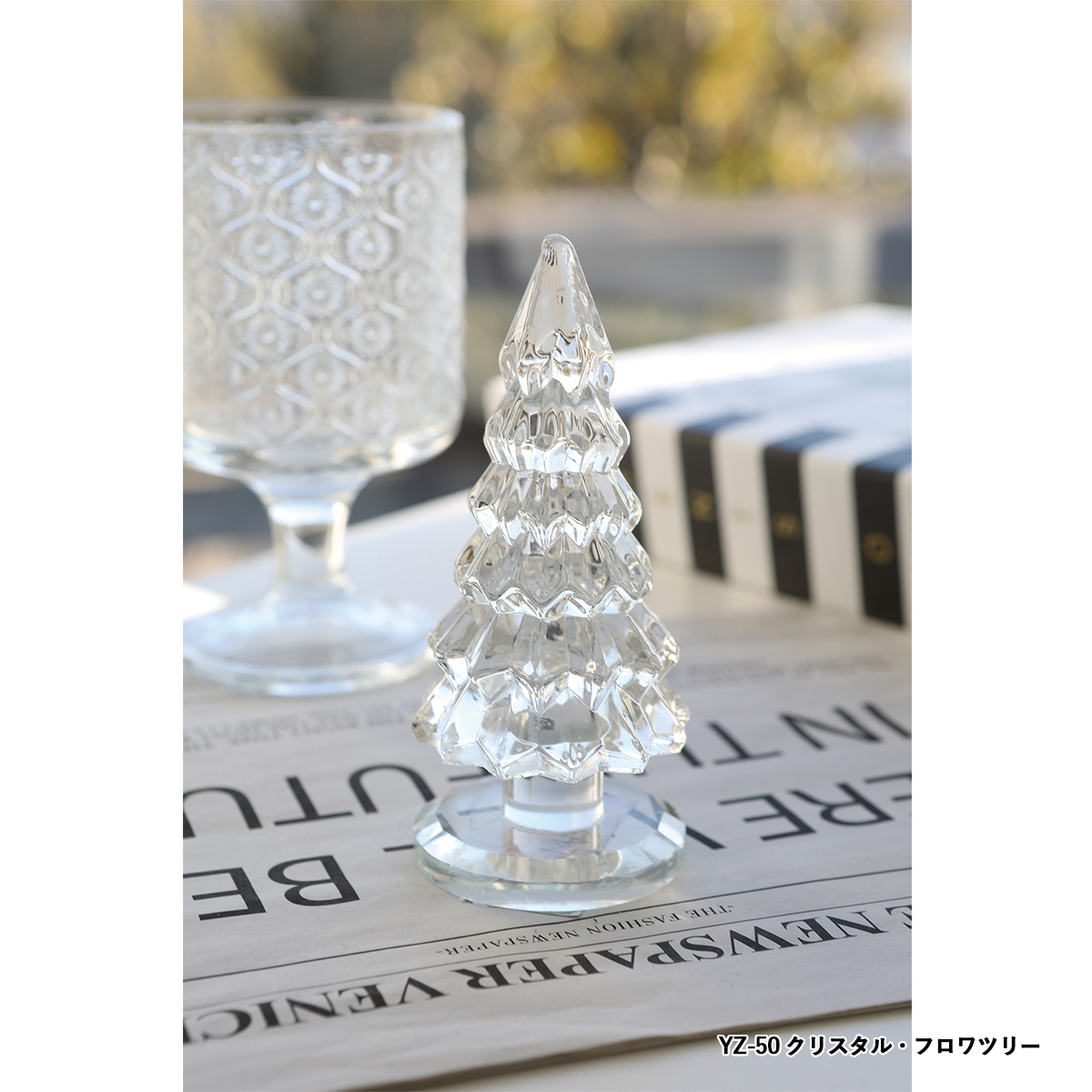 ガラス製のクリスタルカラーのクリスマスツリー置き飾りです。