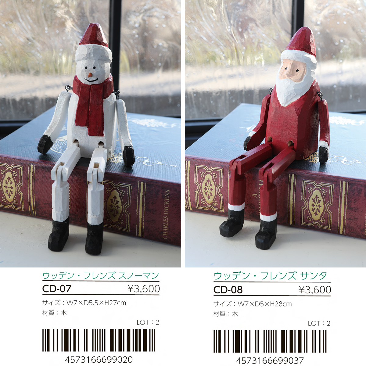 【クリスマス】ウッデン・フレンズ スノーマン&サンタ&オーナメント