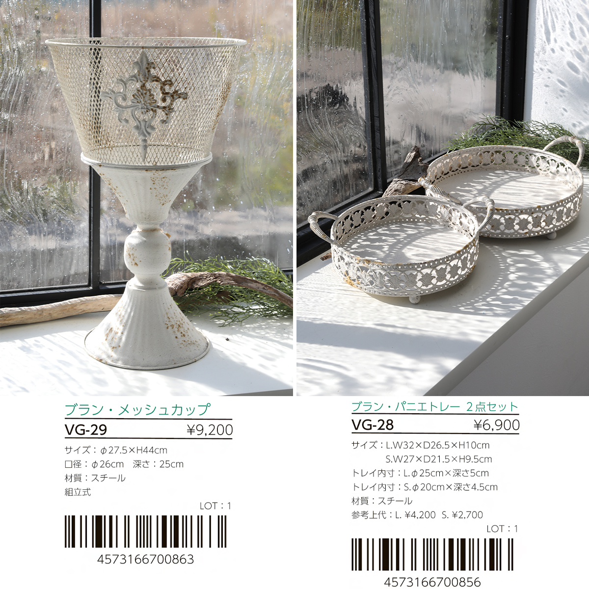 | サイズ | VG-29:直径27.5×H44cm/口径:直径26cm 深さ:25cm VG-28:L.W32×D26.5×H10cm/S.W27×D21.5×H9.5cm トレイ内寸:L.直径25cm 深さ:5cm/S.直径20cm 深さ:4.5cm |