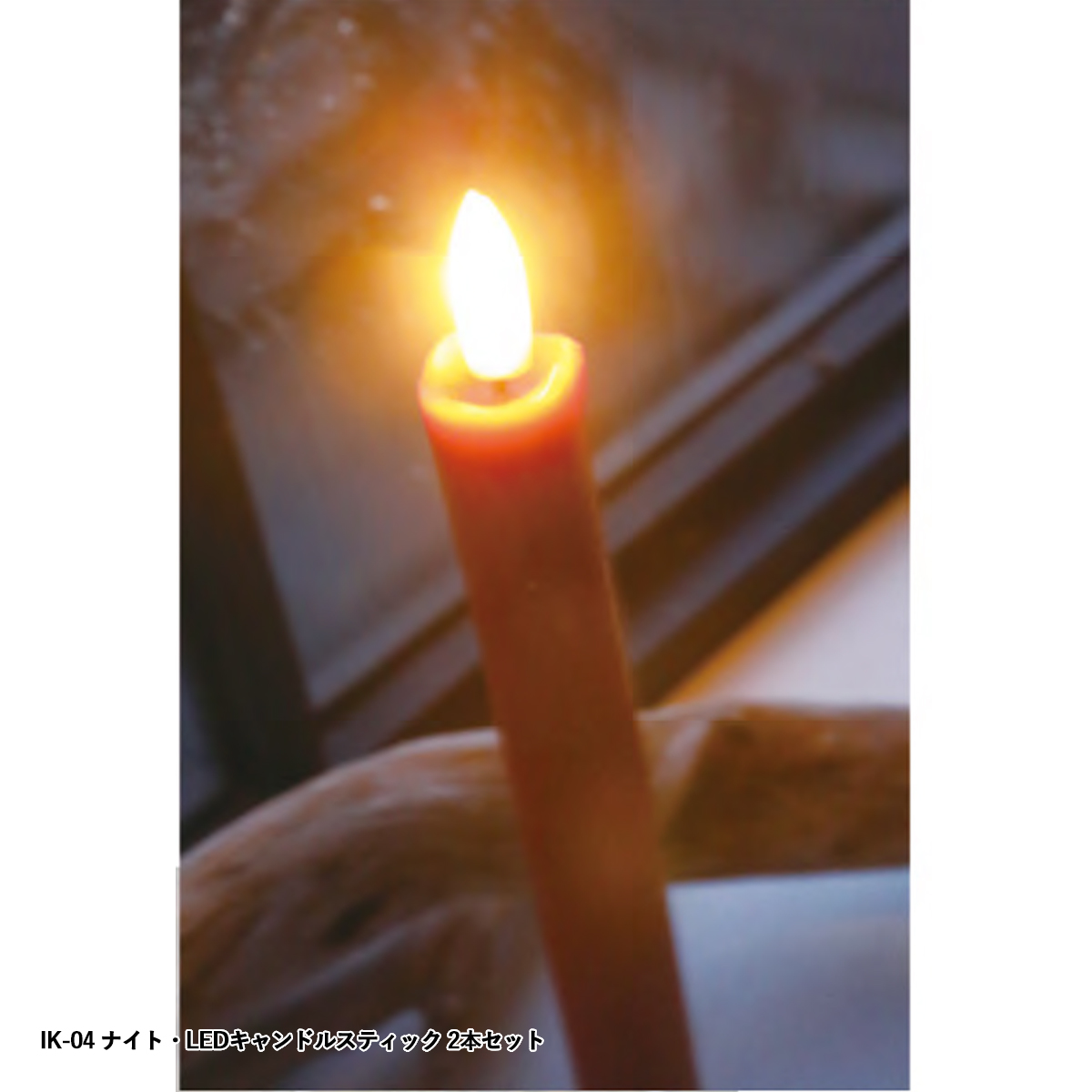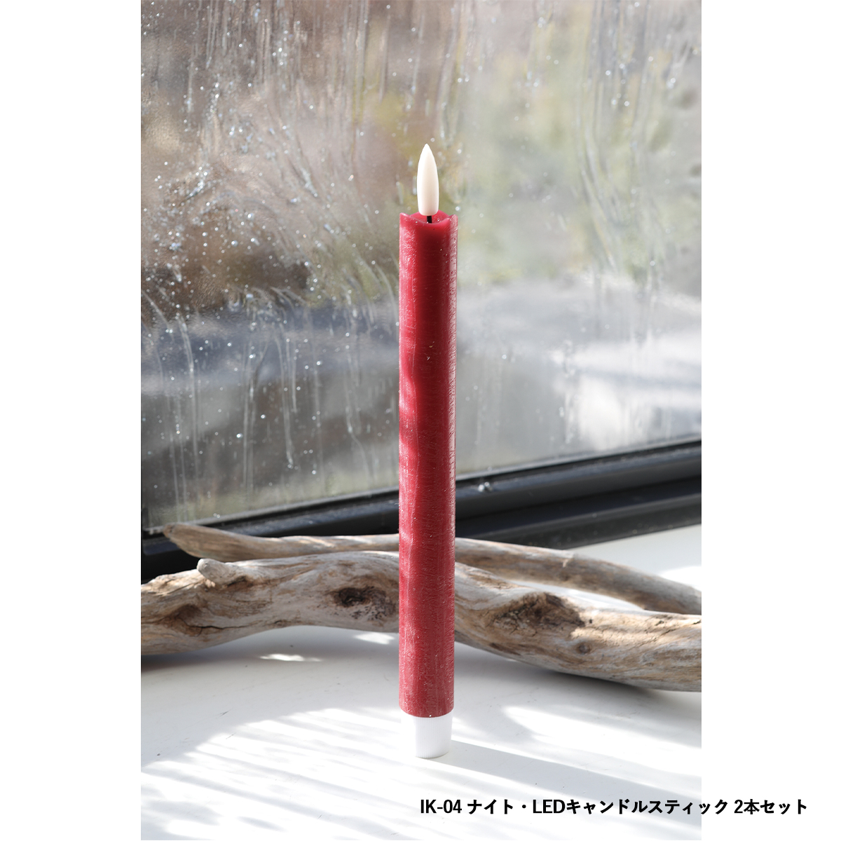 IK-04 キャンドルスティック:ワックス・合成樹脂製のスティック型LEDキャンドル2本セットです。単4電池2本使用(電池別売)