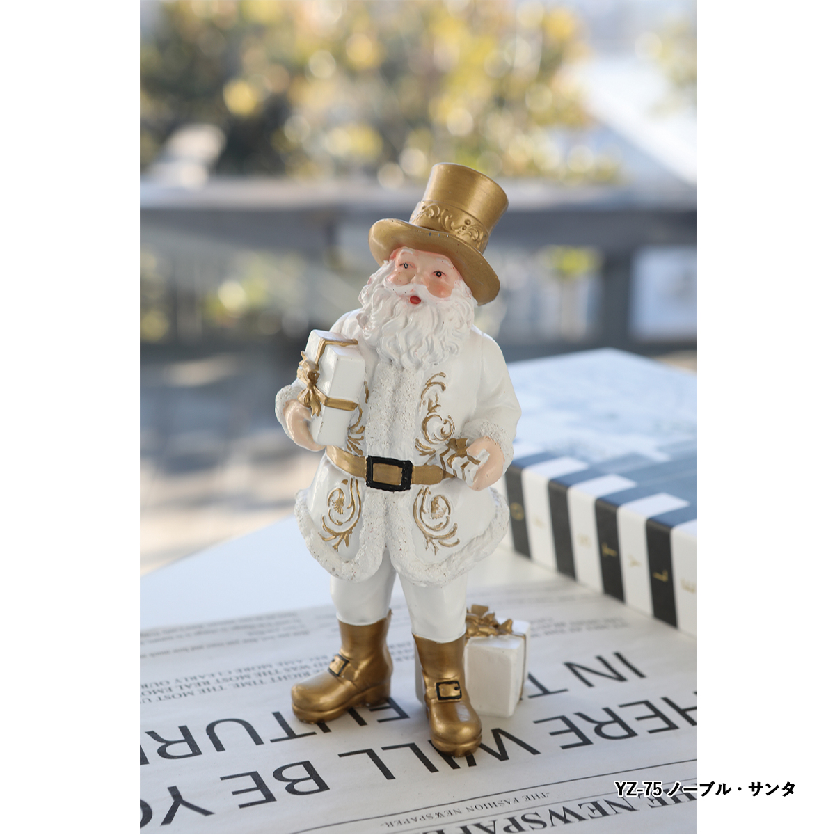YZ-75:白と金のエレガントなサンタクロース人形のオブジェです。