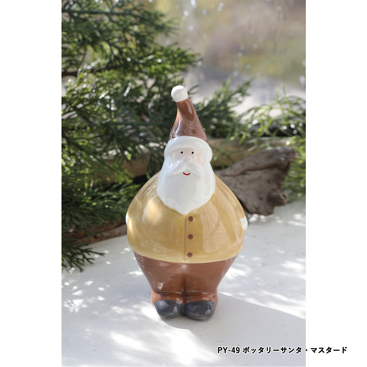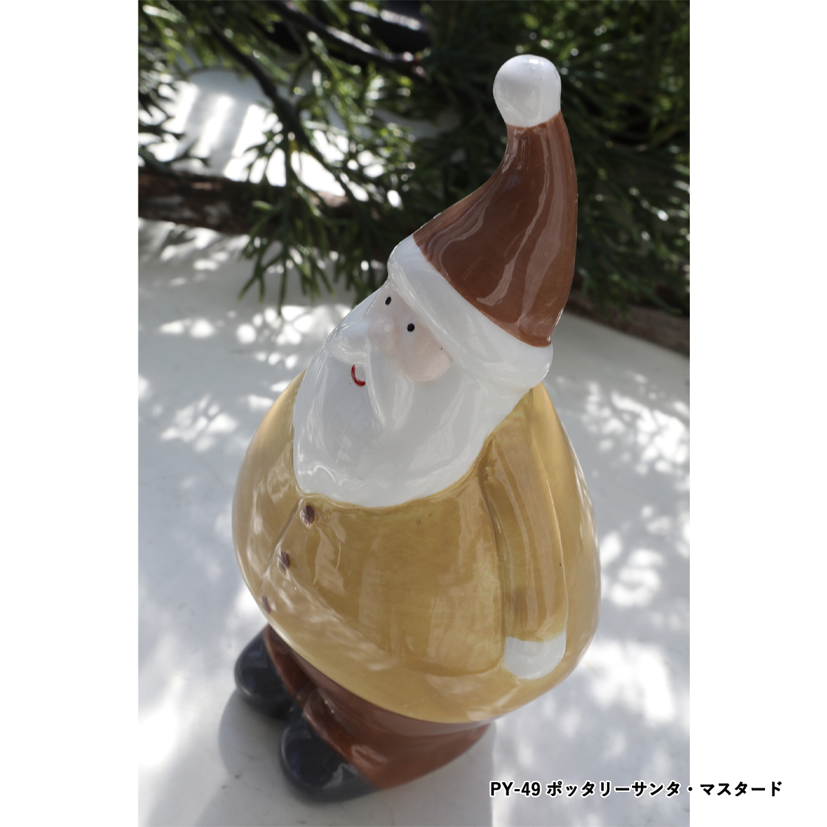 PY-49:マスタードカラーのポリレジン製サンタクロースのオブジェです。