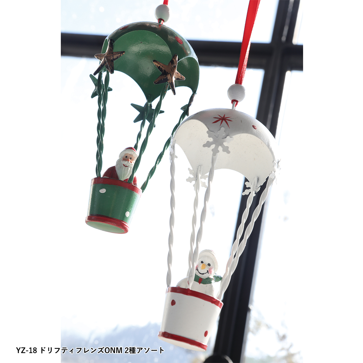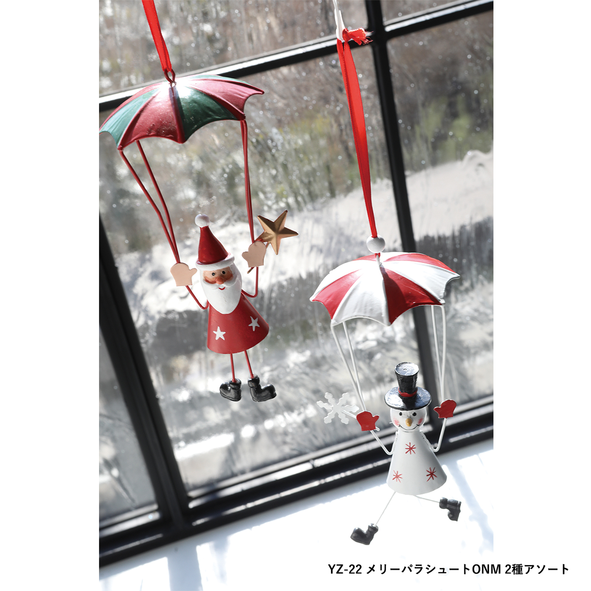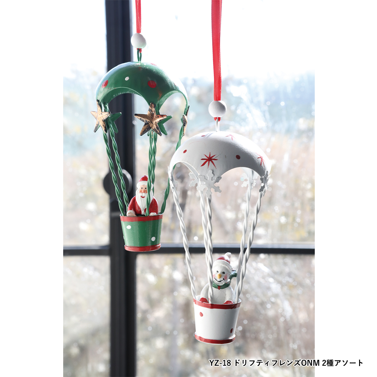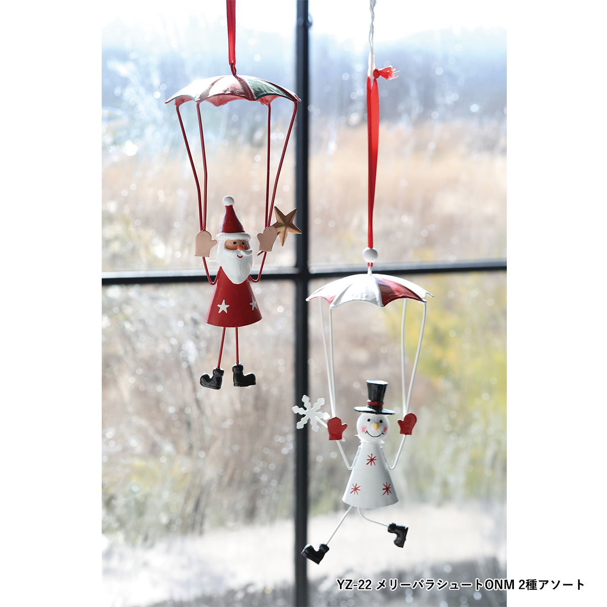 YZ-22:パラシュートで降下するクリスマスキャラクターのオーナメント、2種アソートです。