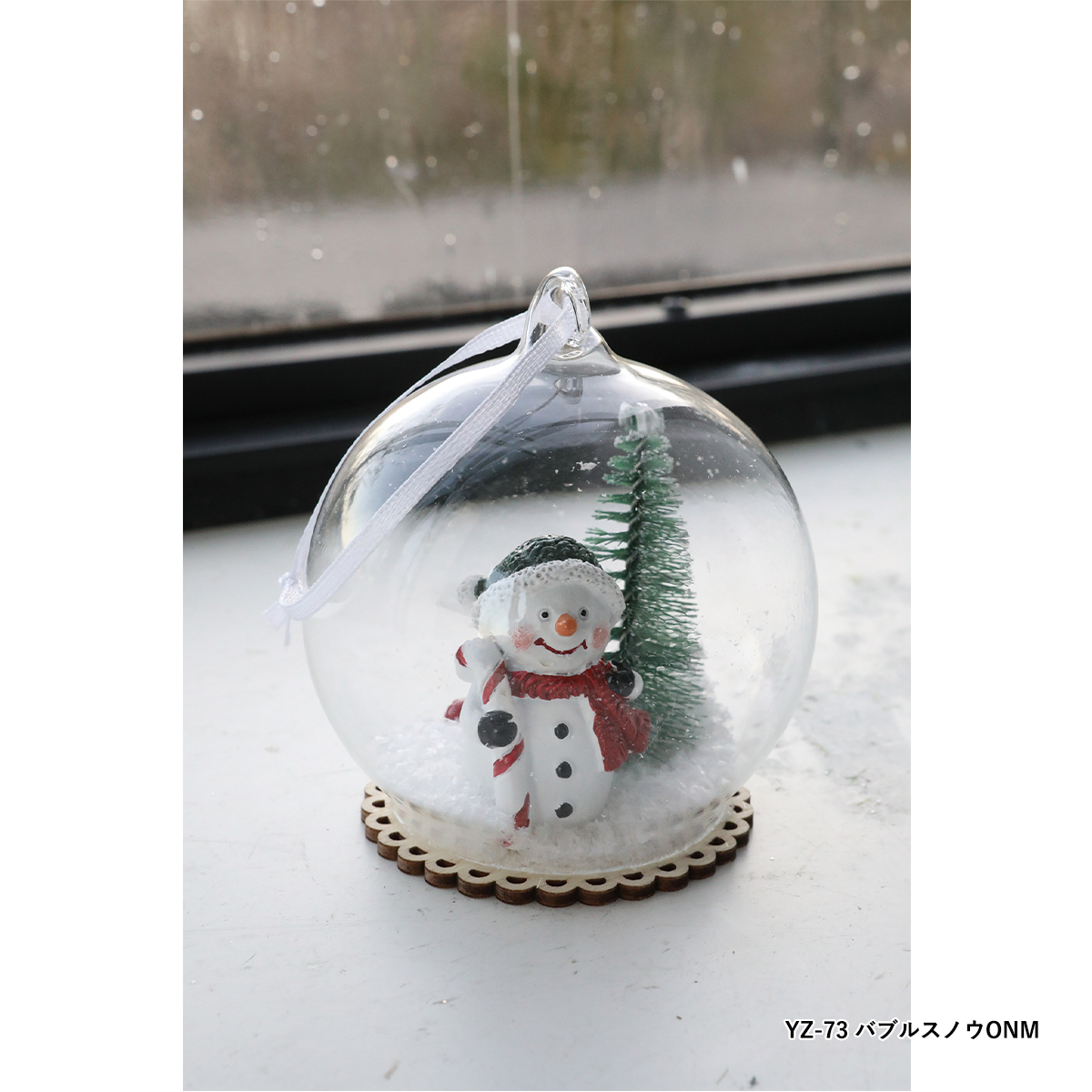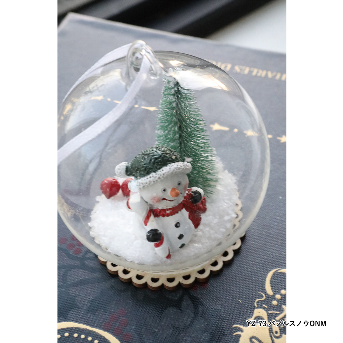 YZ-73:ガラスドーム内に雪だるまとツリーを配したオーナメントです。