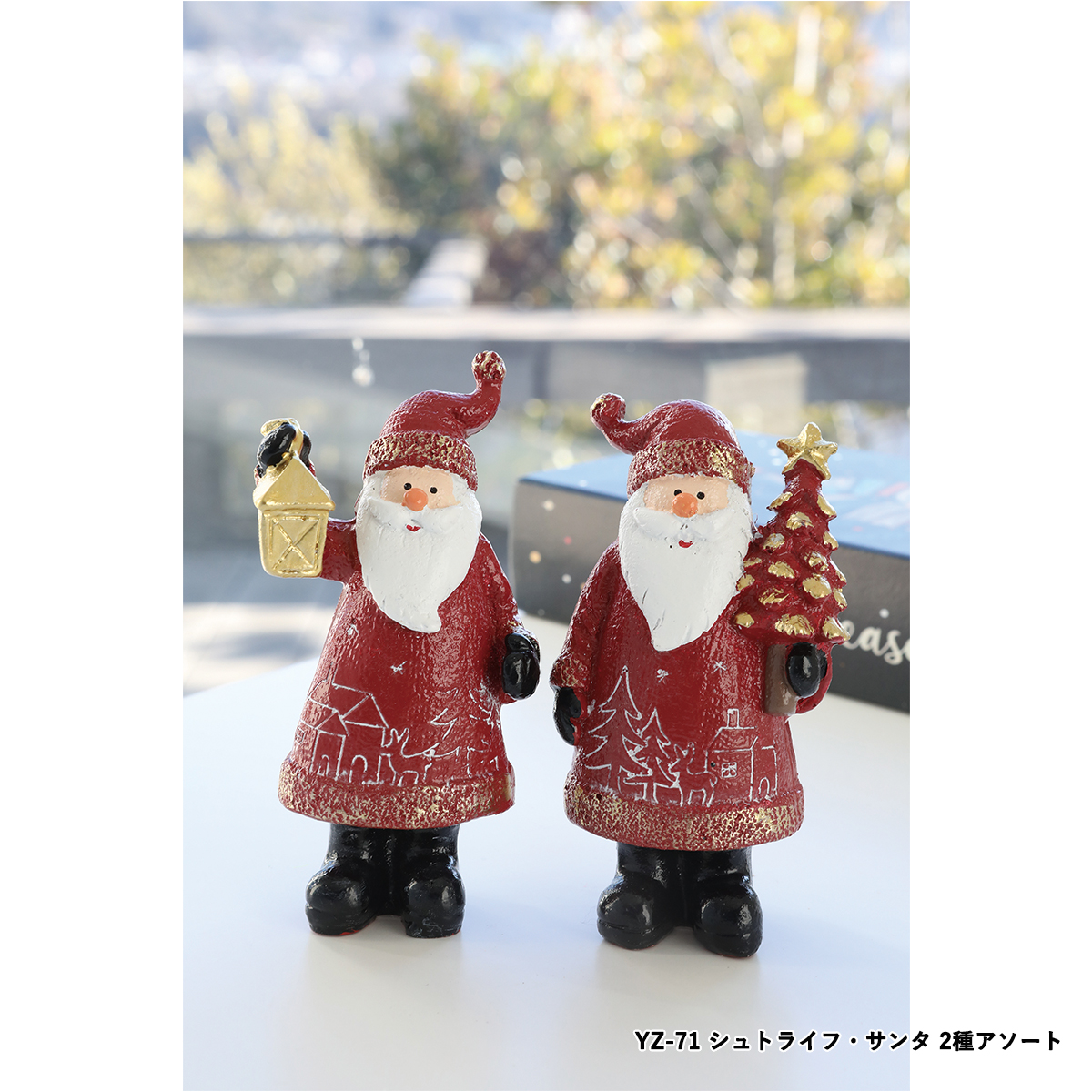 YZ-71:赤いドームコートのサンタクロースのポリレジン製オブジェ、2種アソートです。