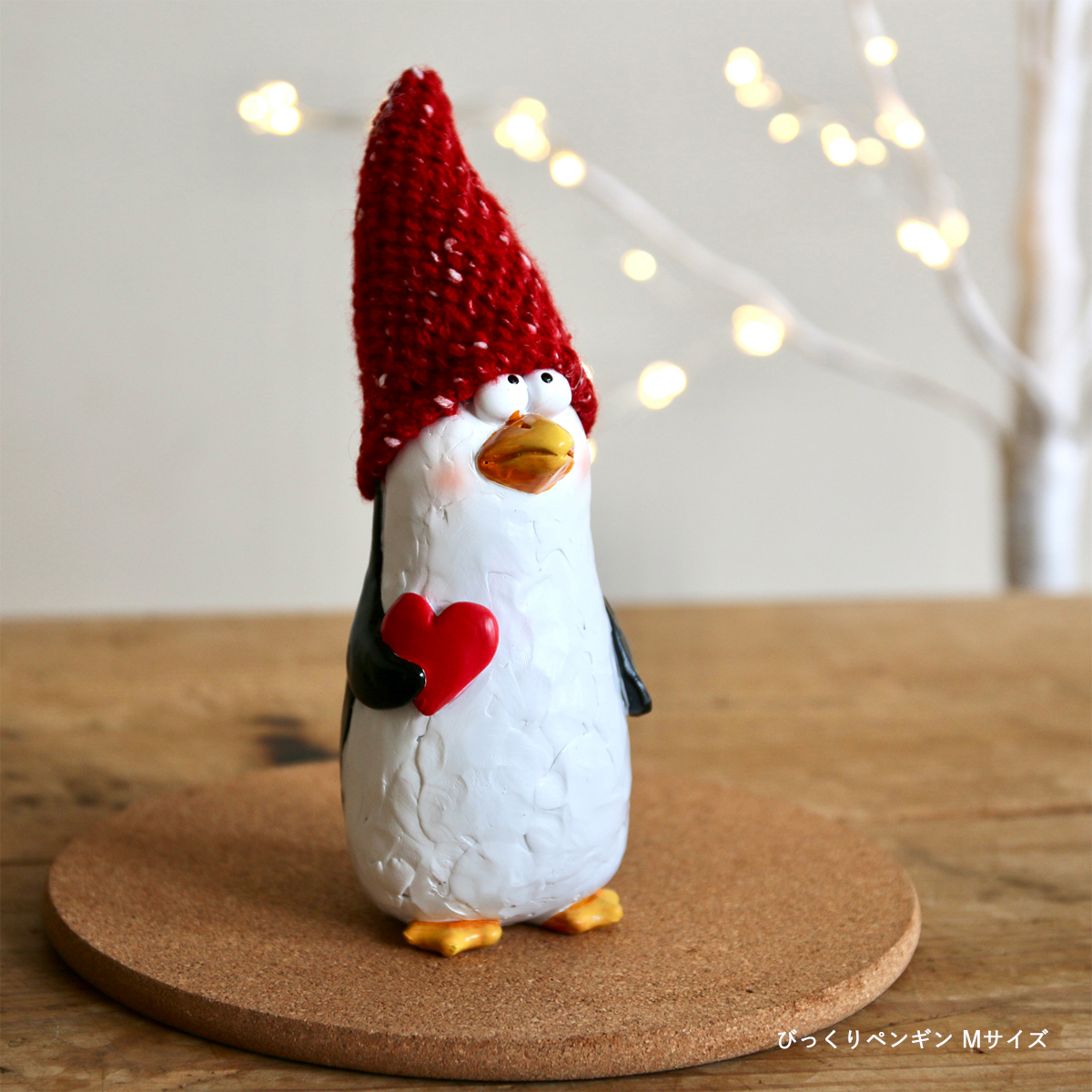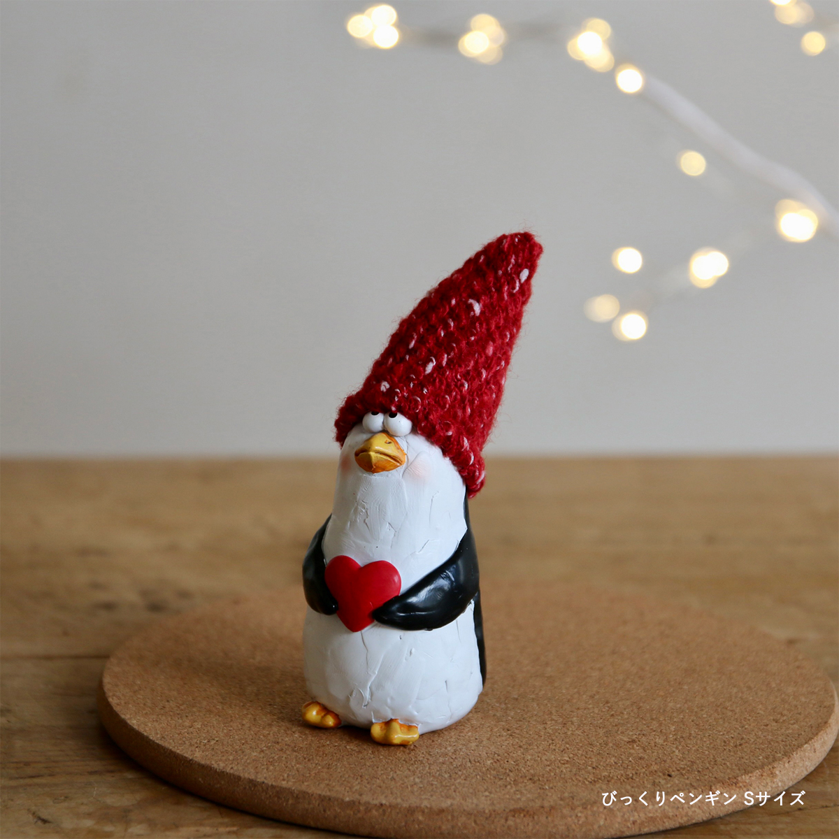 プレゼントを持ったサンタ、ころんと寝転んだサンタ、ハートを抱えたペンギンなど、それぞれ違ったポーズと表情で、見ているだけで楽しい気分に。
