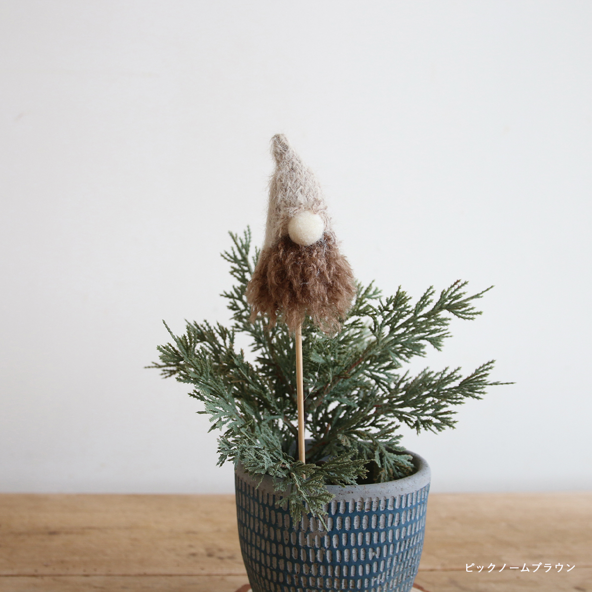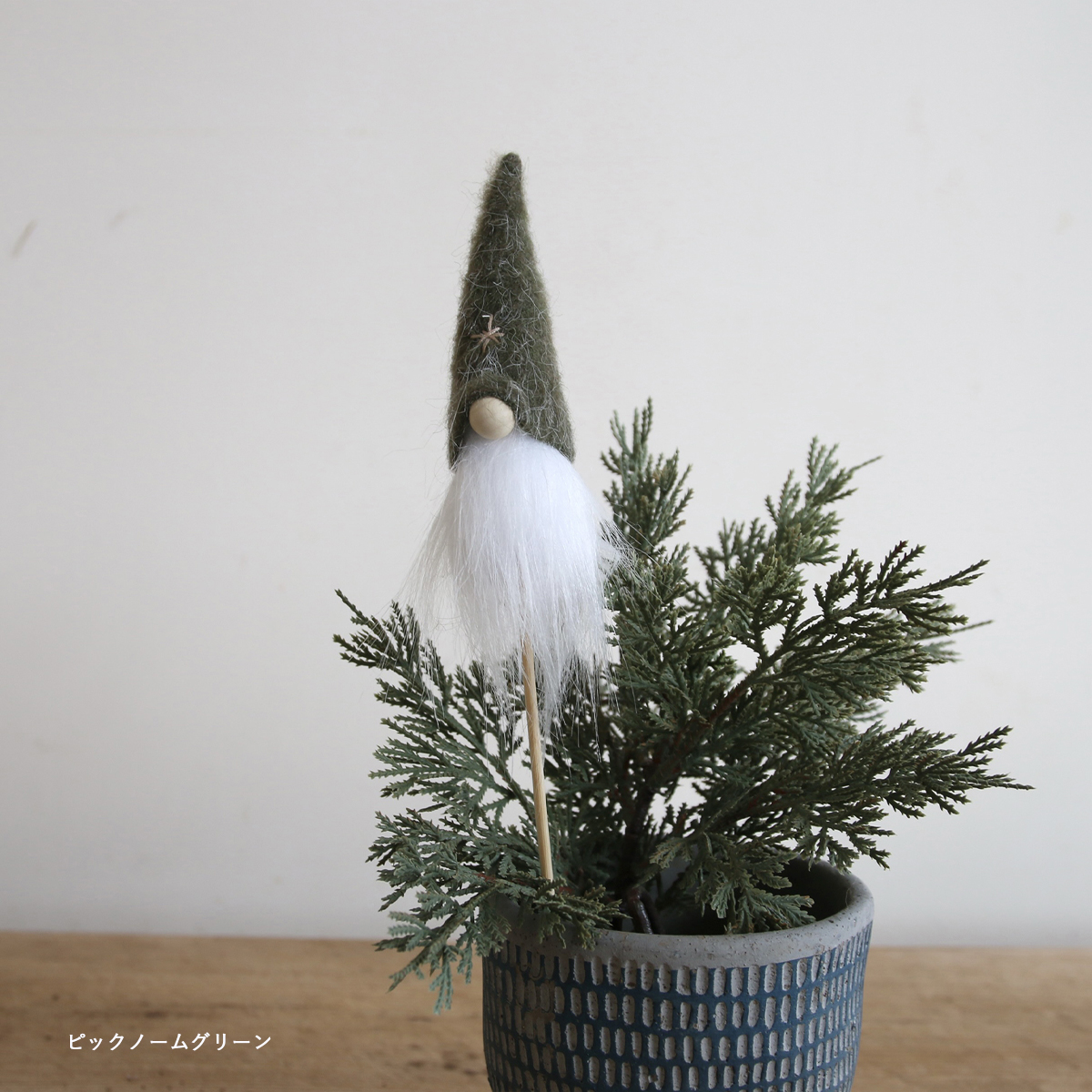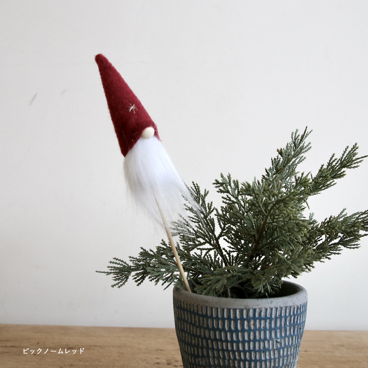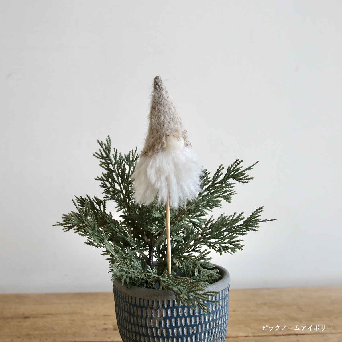 ツリーやノームをモチーフにした、素朴で愛らしいデザインが冬の空間にやさしくなじみます。