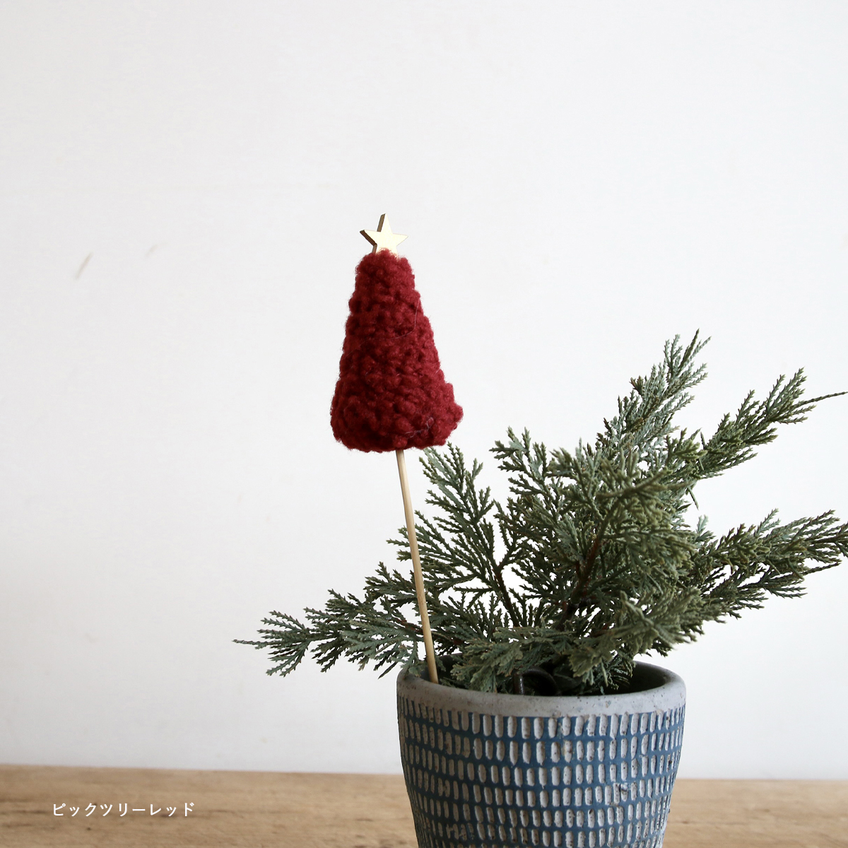 ピックタイプは鉢植えやリース、ツリーの足元に添えるだけで、さりげない季節感をプラス。
