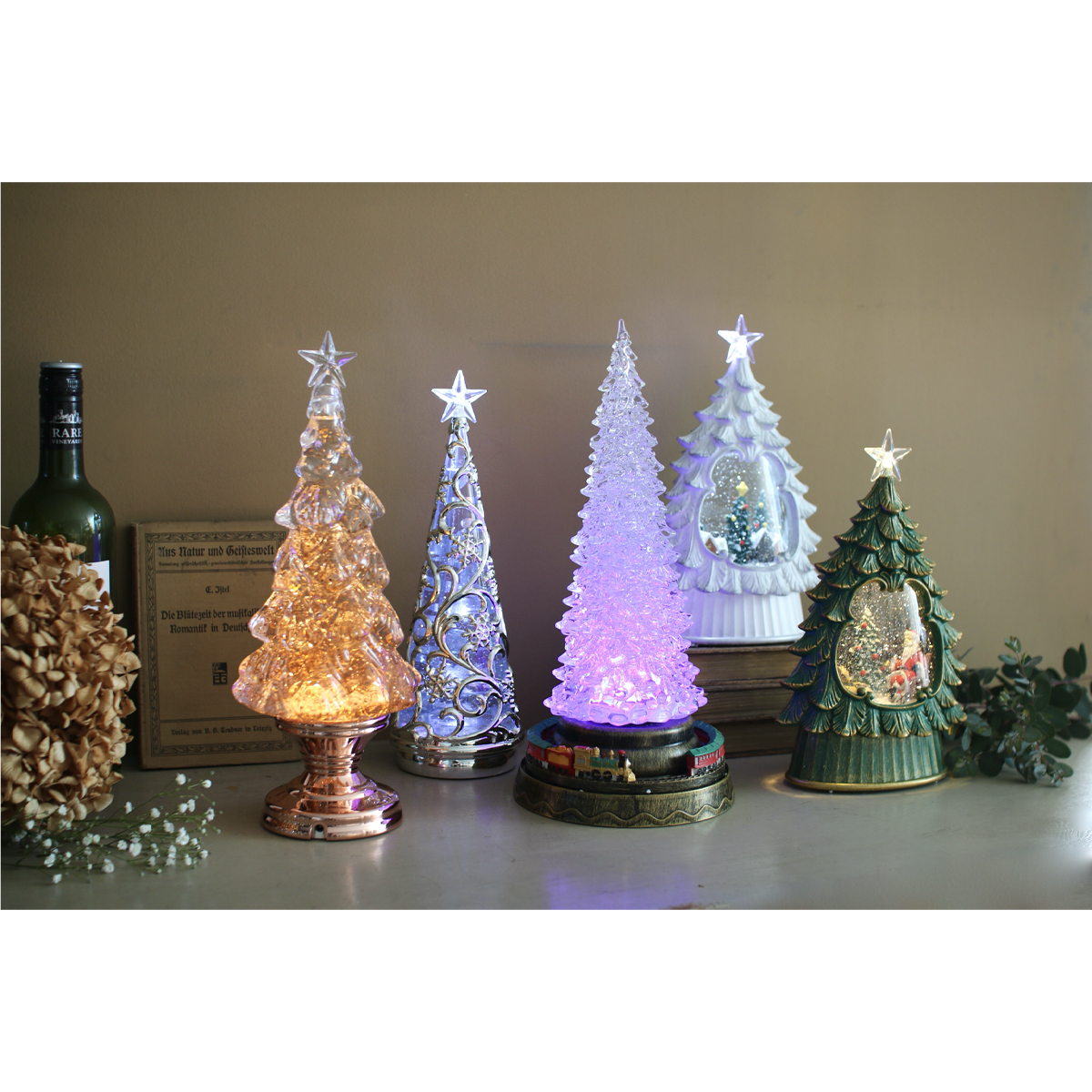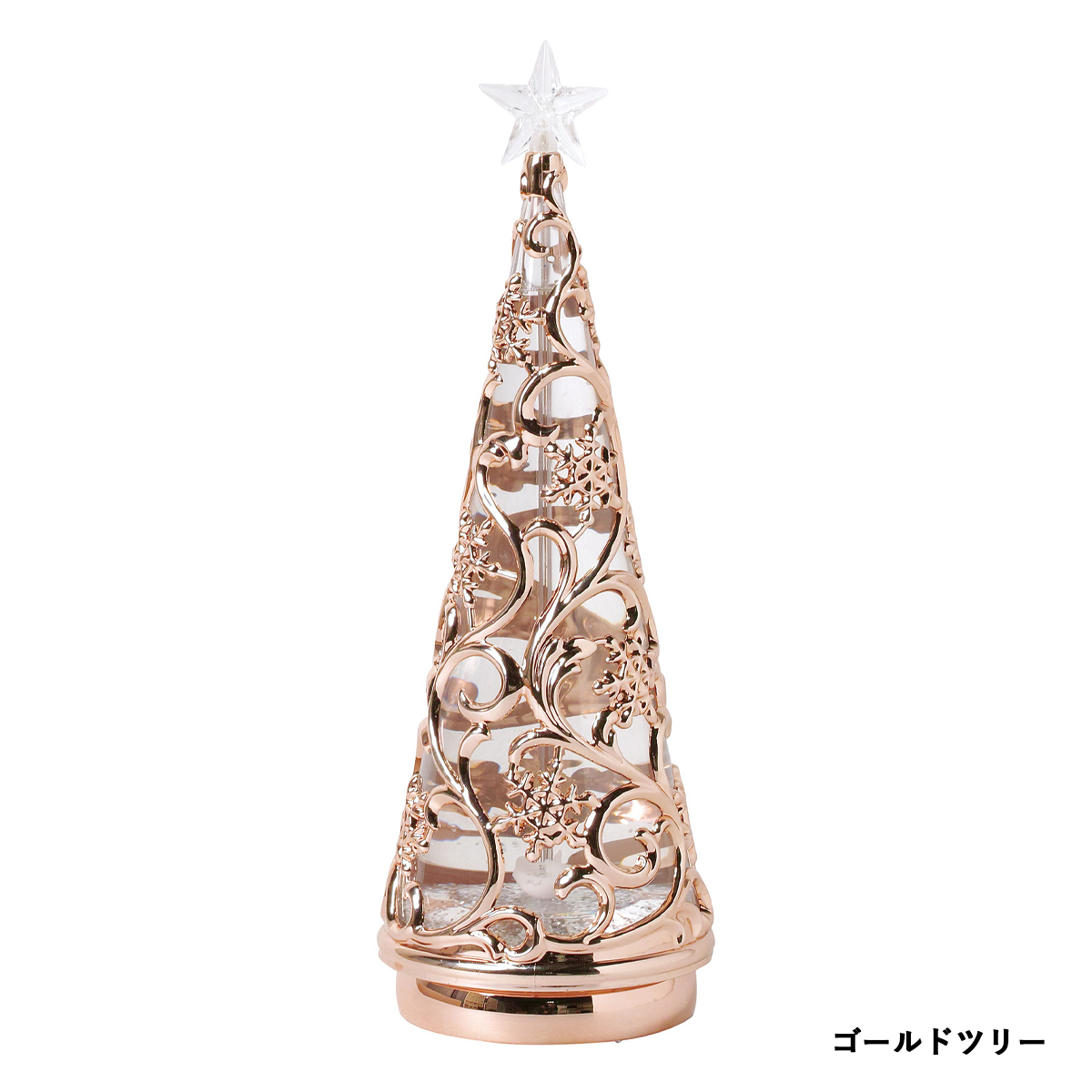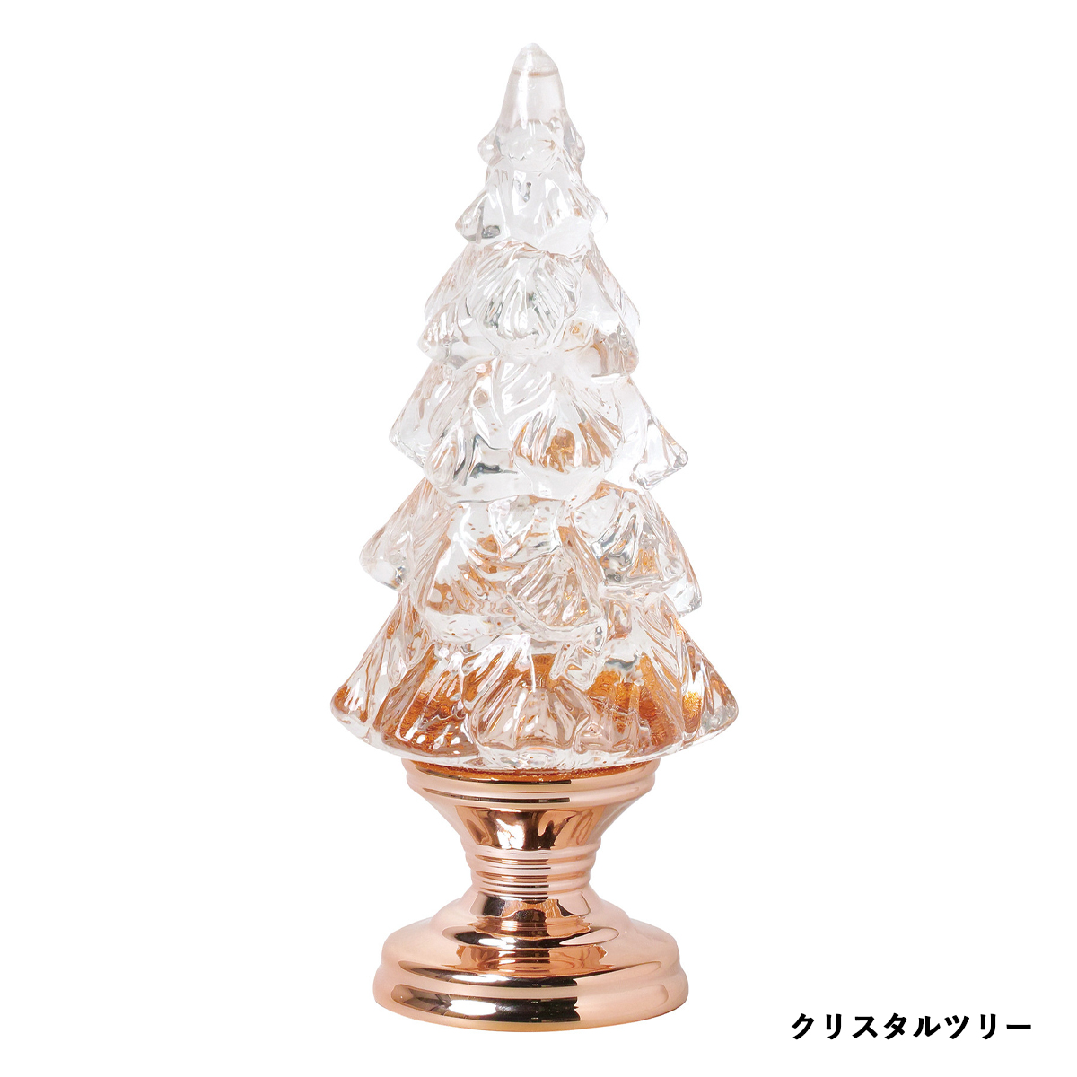 クリアやゴールド、グリーンなどの多彩なデザインが揃い、LEDライトが美しく灯るツリーオブジェ。