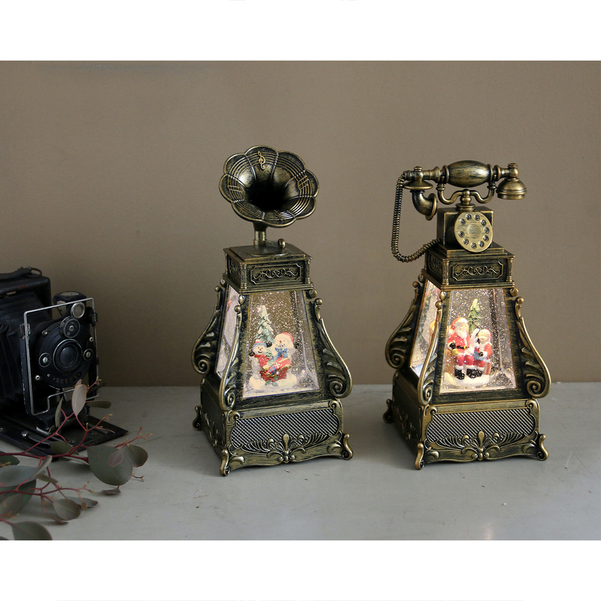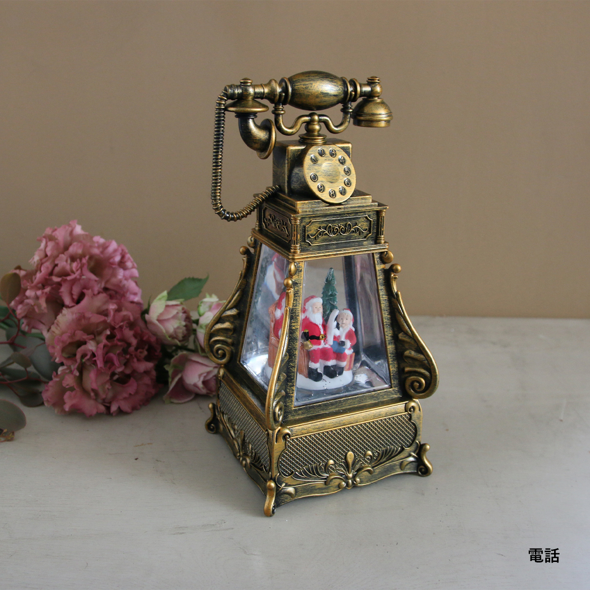 LEDライトに照らされたグリッターが水の中で回転しキラキラと幻想的なクリスマスを演出します。
