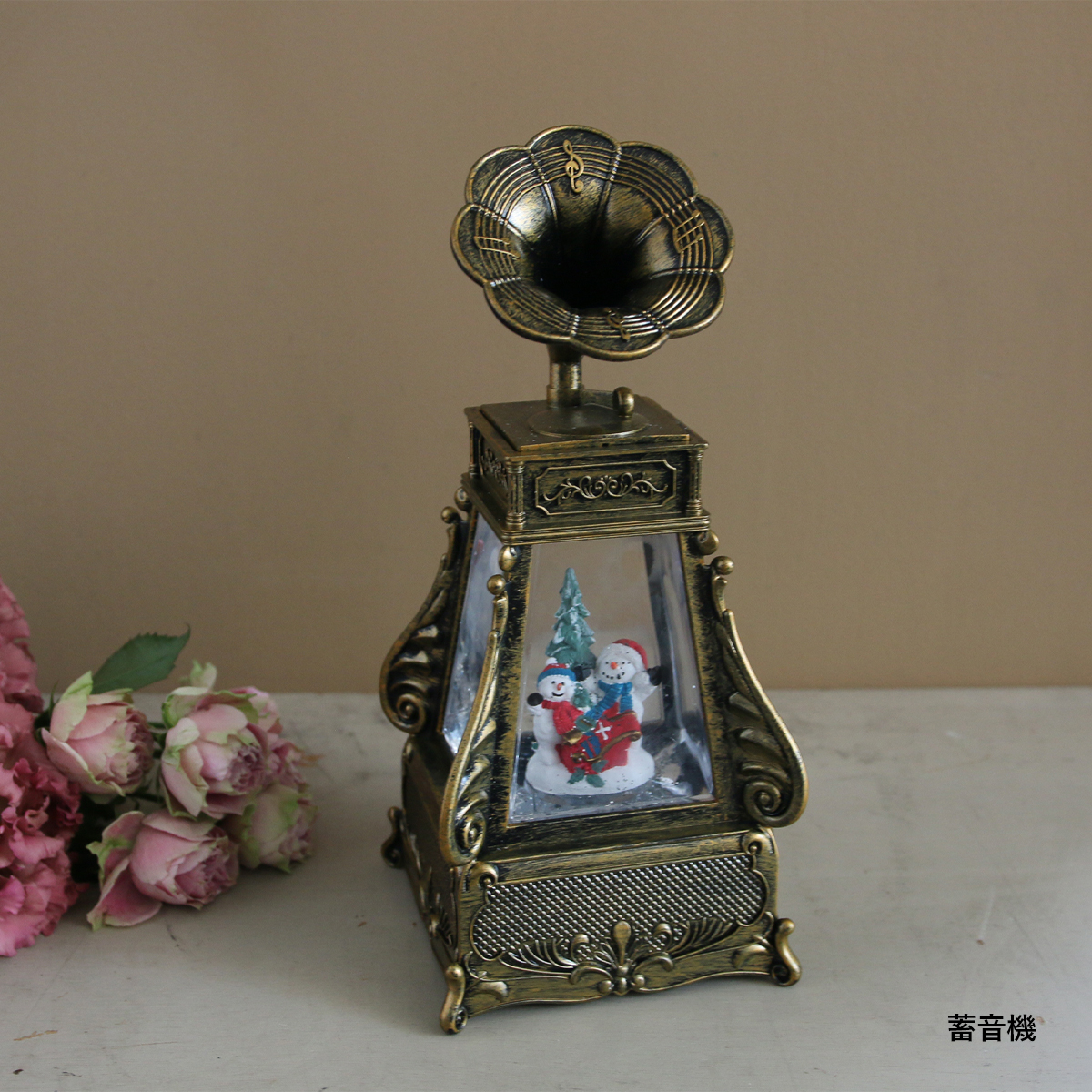 ドームの中のラメがモーターによって自動で舞い上がりあたたかいライトに中の世界が照らされます。