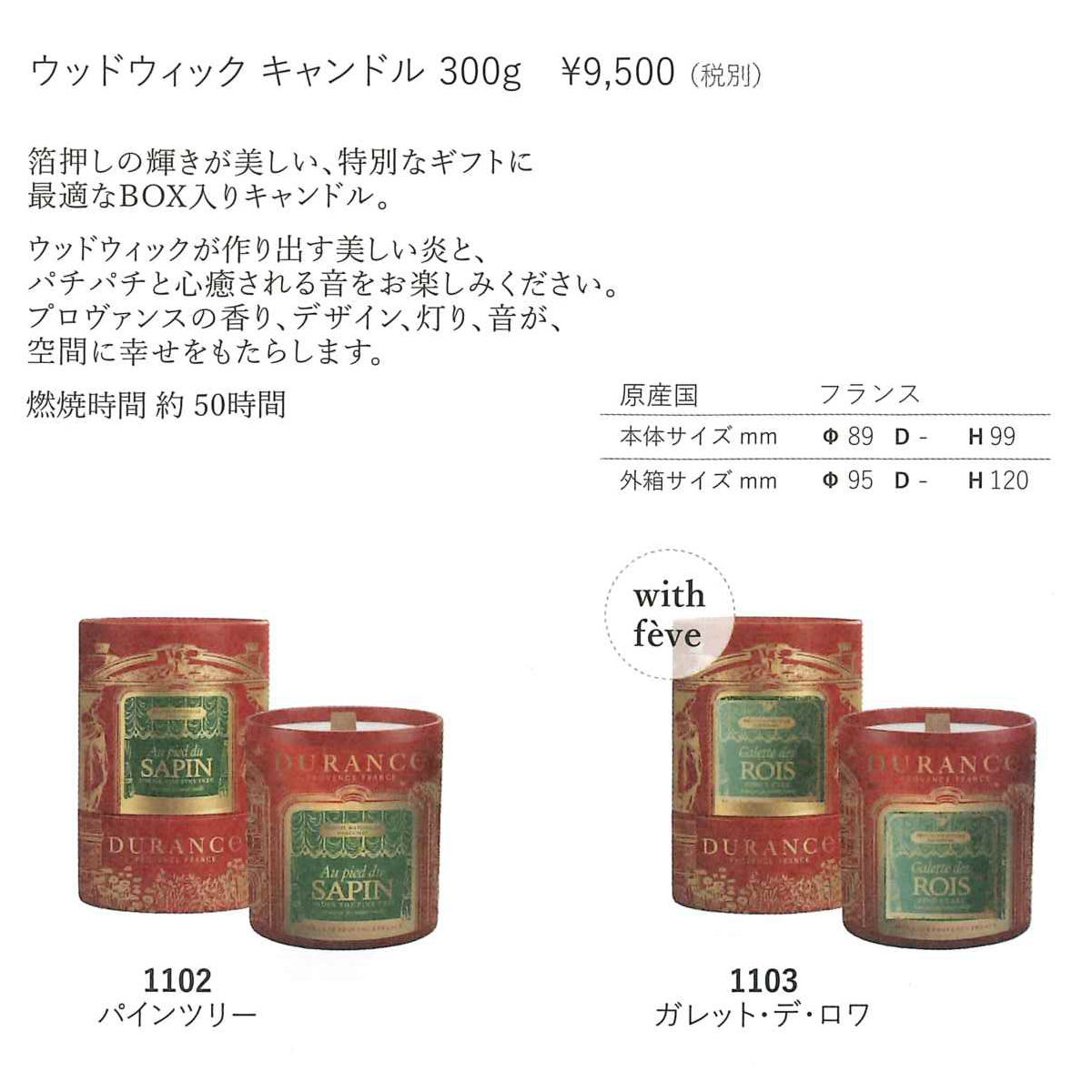 《予約:4/10(金)締切》数量限定【DURANCE】ウッドウィック キャンドル 300g パインツリー・ガレット・デ・ロワ クリスマス