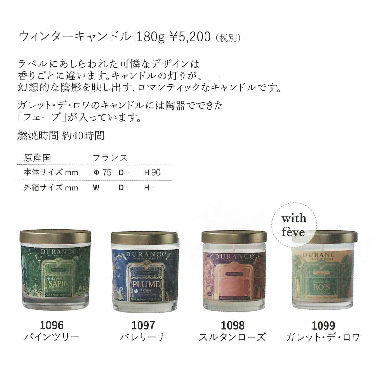 《予約:4/10(金)締切》数量限定【DURANCE】ウィンターキャンドル 180g パインツリー・バレリーナ・スルタンローズ・ガレット・デ・ロワ クリスマス