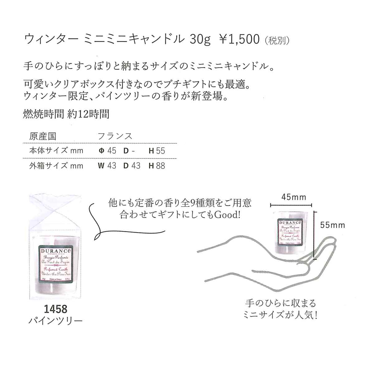 《予約:4/10(金)締切》数量限定【DURANCE】ウィンター ミニミニキャンドル 30g パインツリー