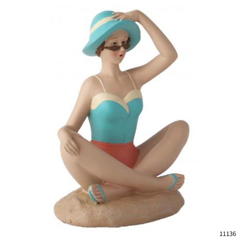 オブジェ(Beach) 女性 猫 夏 海 置物