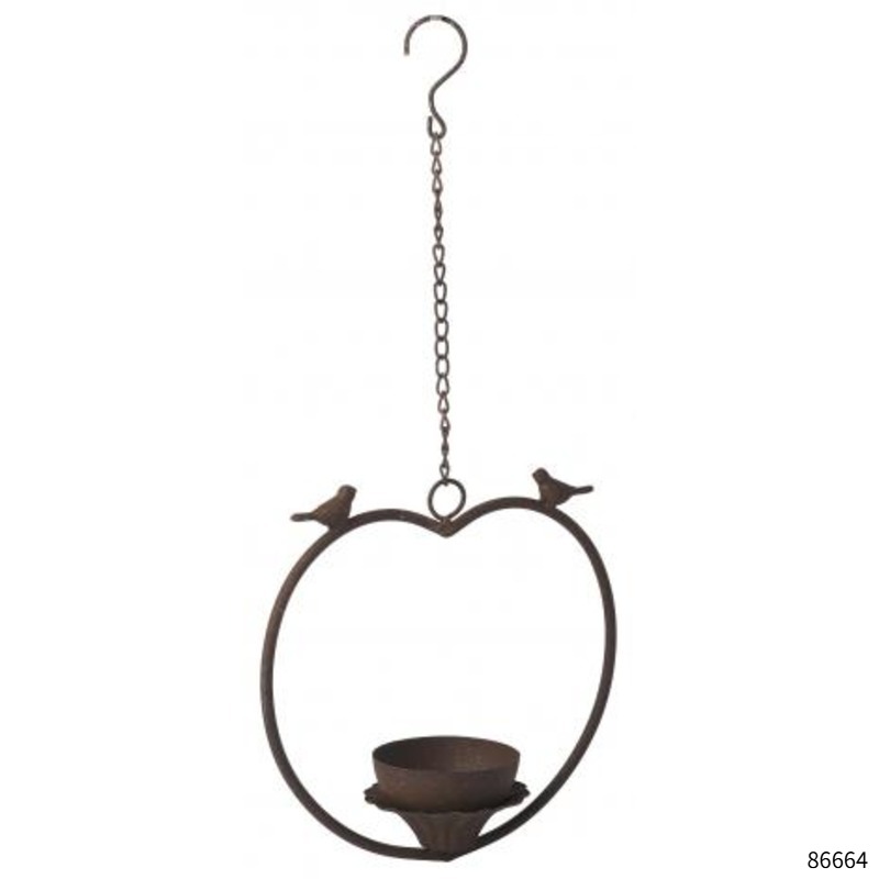 86664:鉄製のハンギングポットです。水抜き穴無し仕様のハート型デザインです。