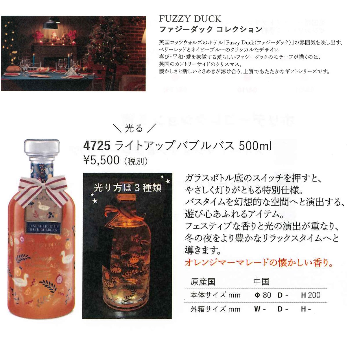 フェスティブな香りを光の演出が重なり、冬の夜をより豊かなリラックスタイムへと導きます。