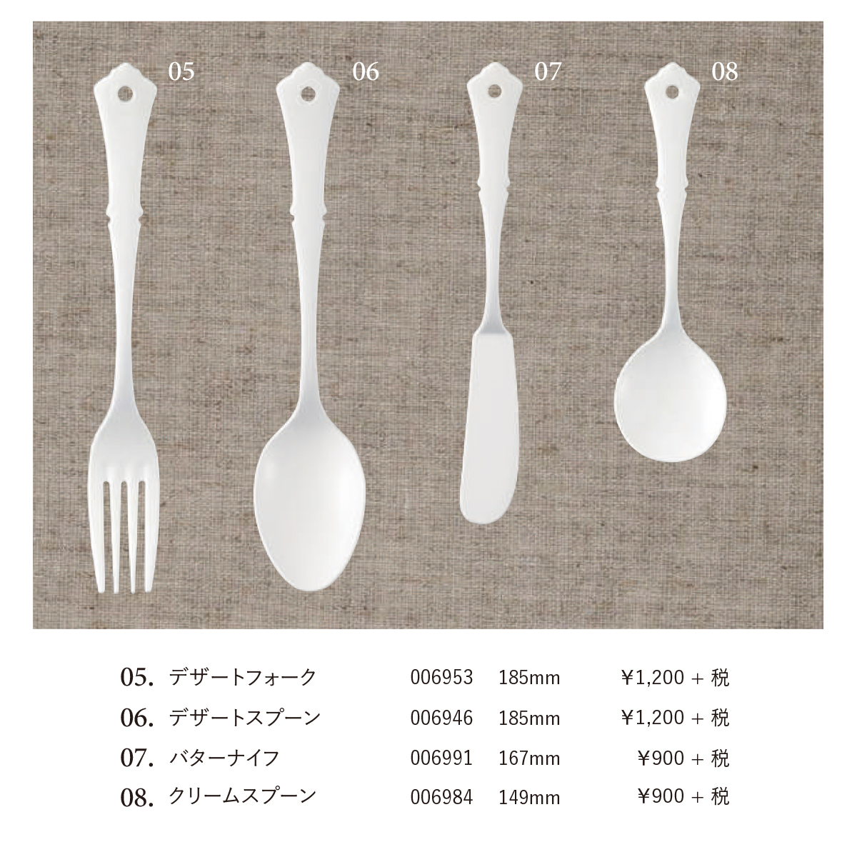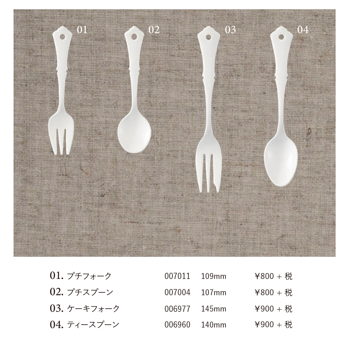 | サイズ | クラシカルブラン プチフォーク:109mm クラシカルブラン プチスプーン:107mm クラシカルブラン ケーキフォーク:145mm クラシカルブラン ティースプーン:140mm クラシカルブラン デザートフォーク:185mm クラシカルブラン デザートスプーン:185mm クラシカルブラン バターナイフ:167mm クラシカルブラン クリームスプーン:149mm |