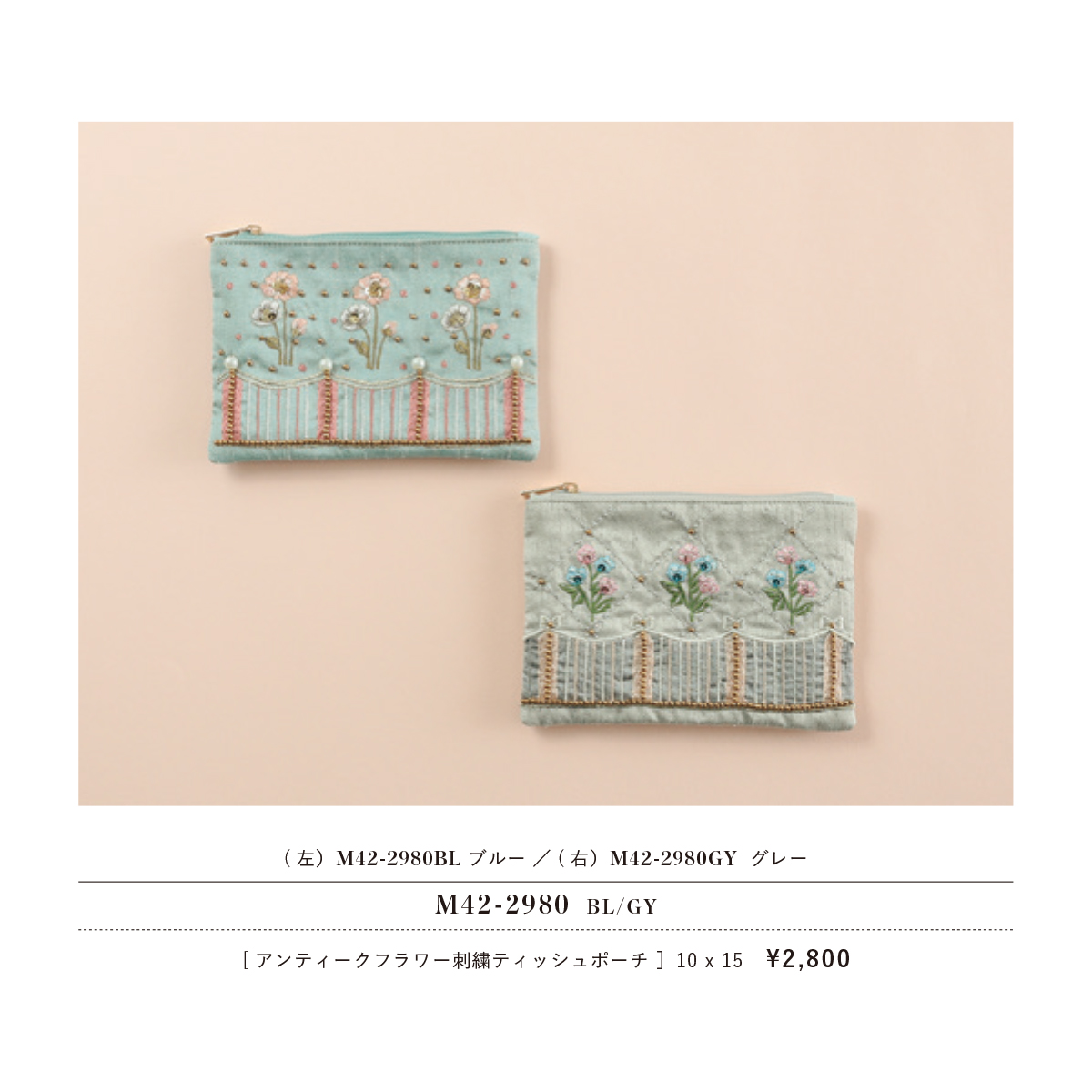 新作のアンティークフラワー刺繍シリーズは、小さなお花の可愛らしさと、落ち着いたカラーが調和した上品な仕上がりです。