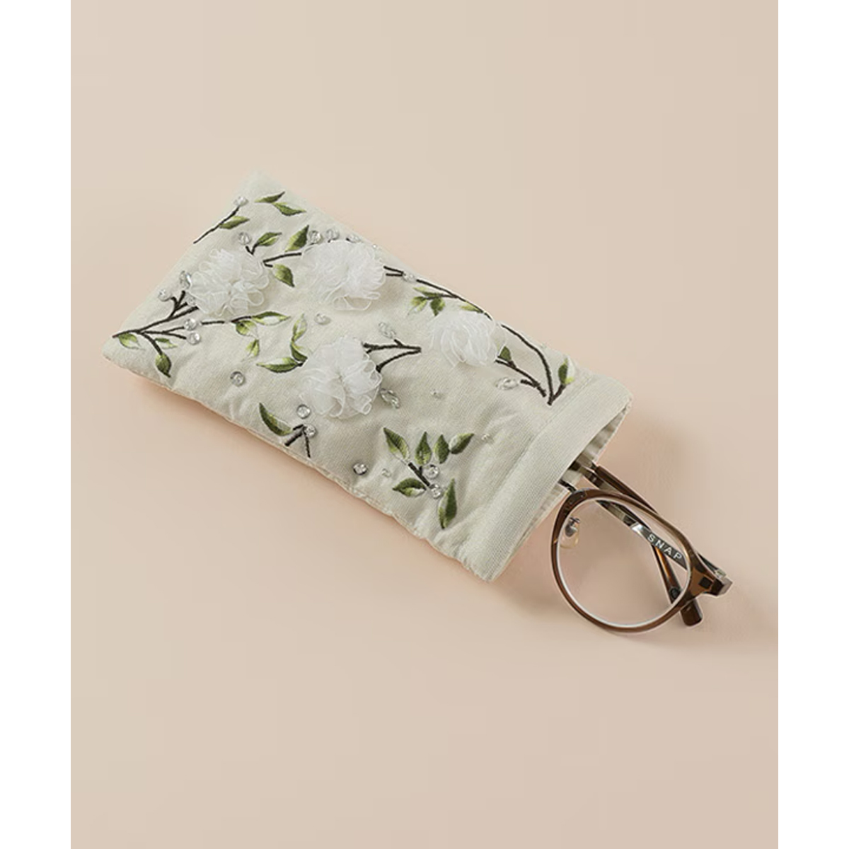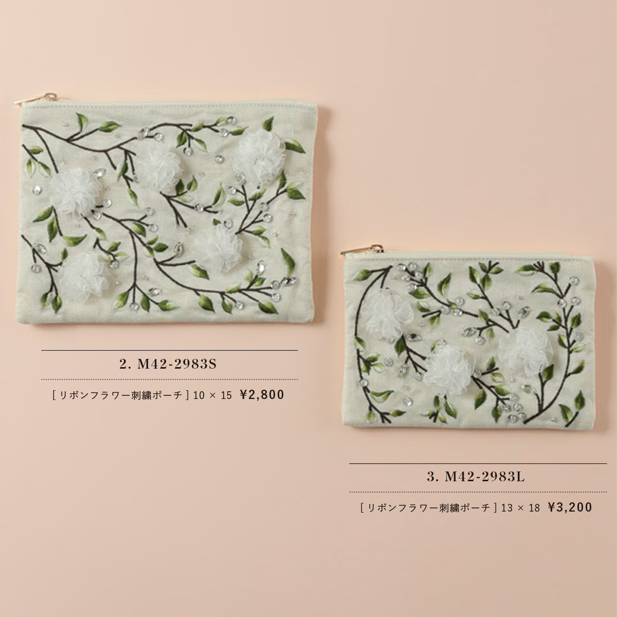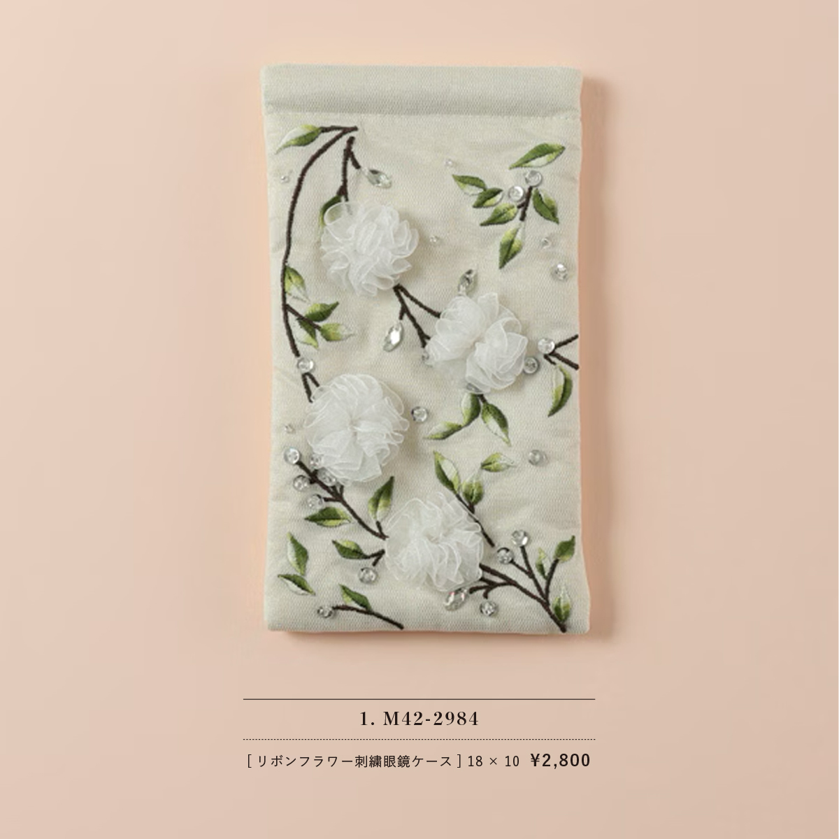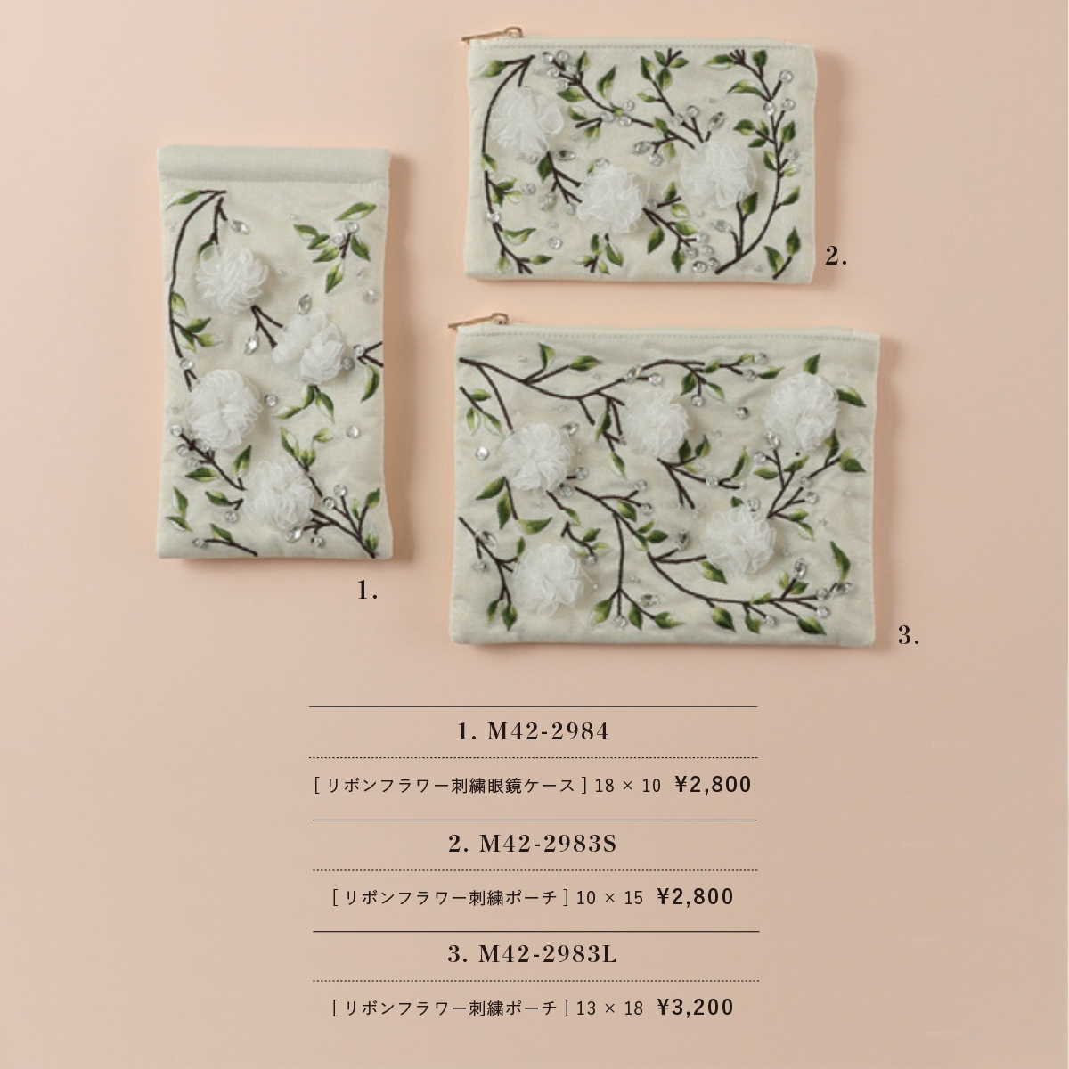 リボンフラワー刺繍 眼鏡ケース&刺繍ポーチS&Lサイズ