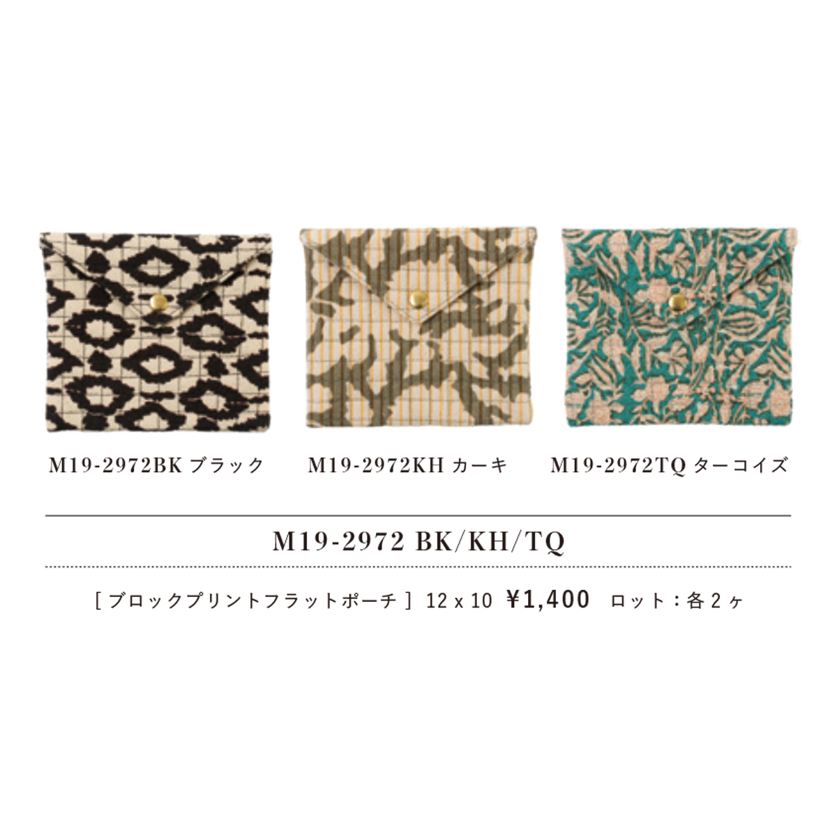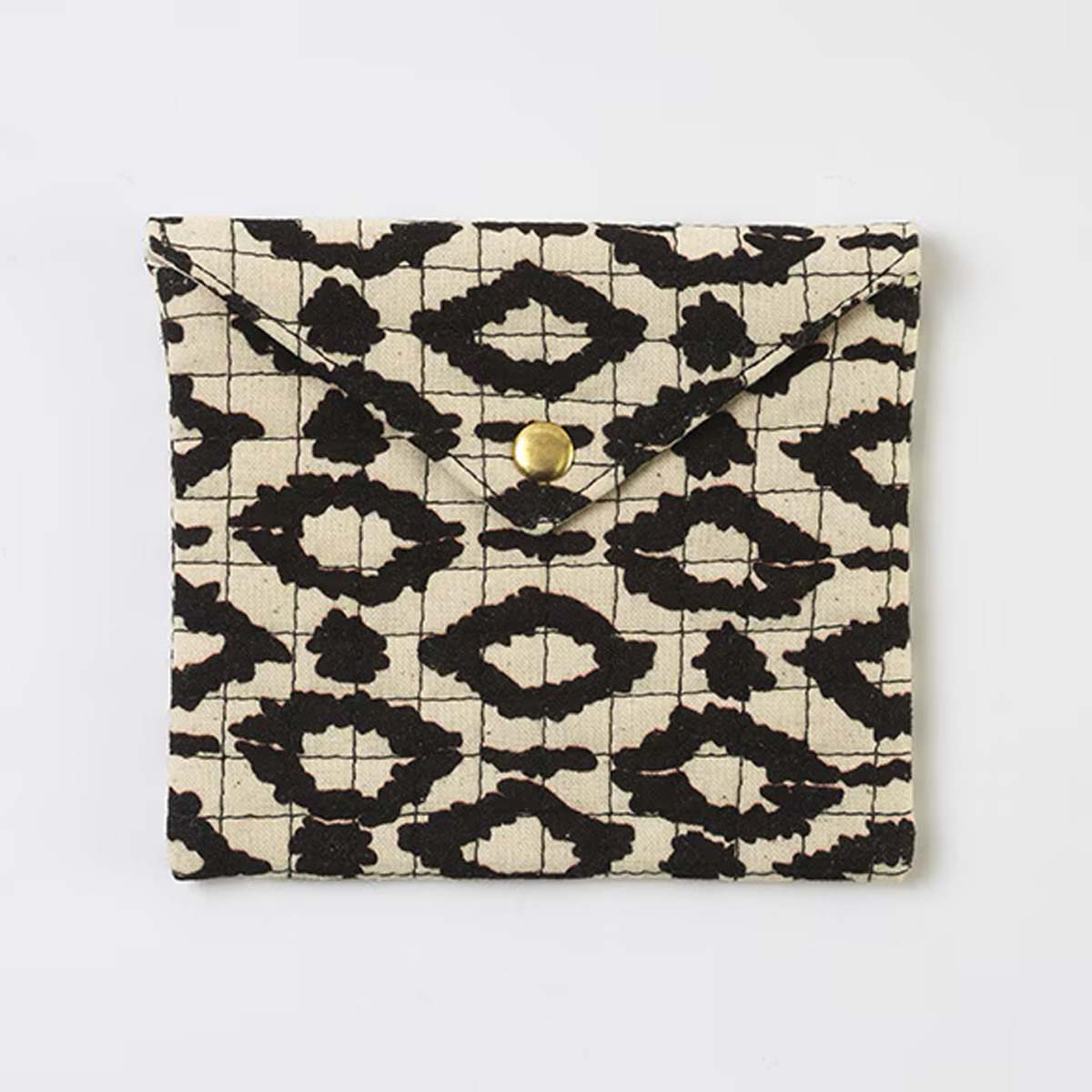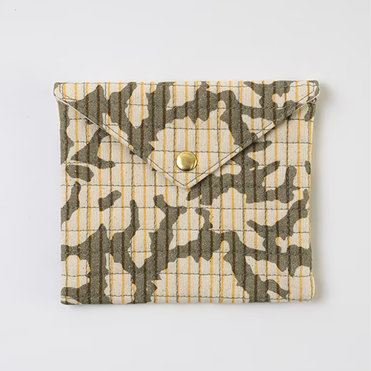 手彫りの木版でプリントされた柔らかなインド綿に、ふっくらとキルティングを施したブロックプリントのポーチシリーズ。