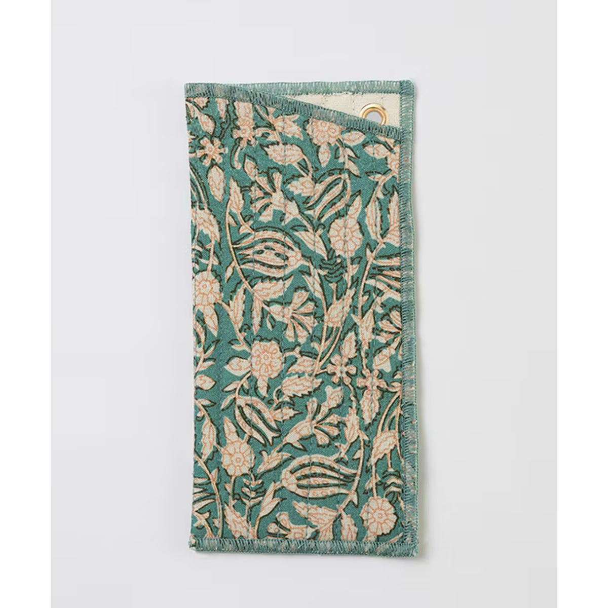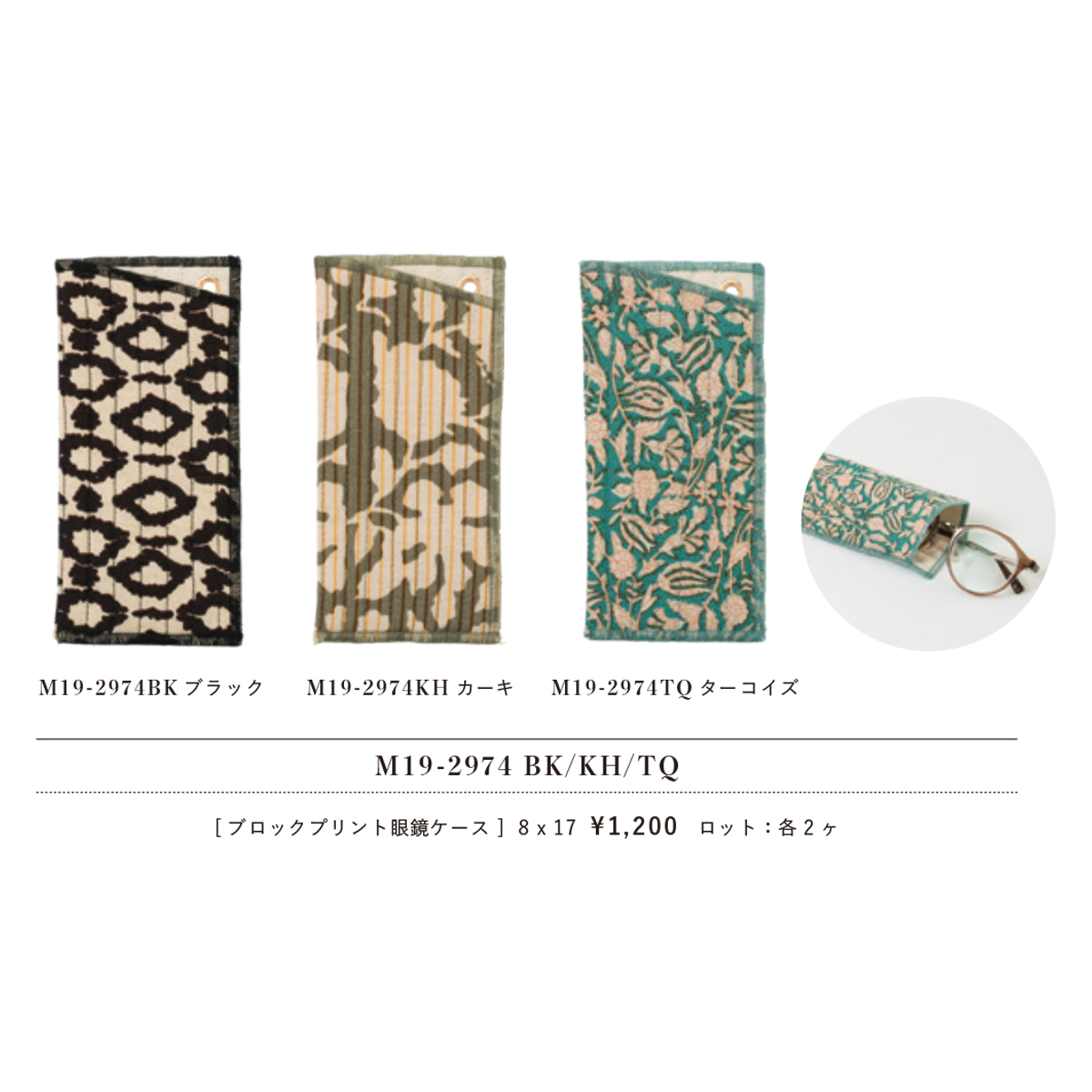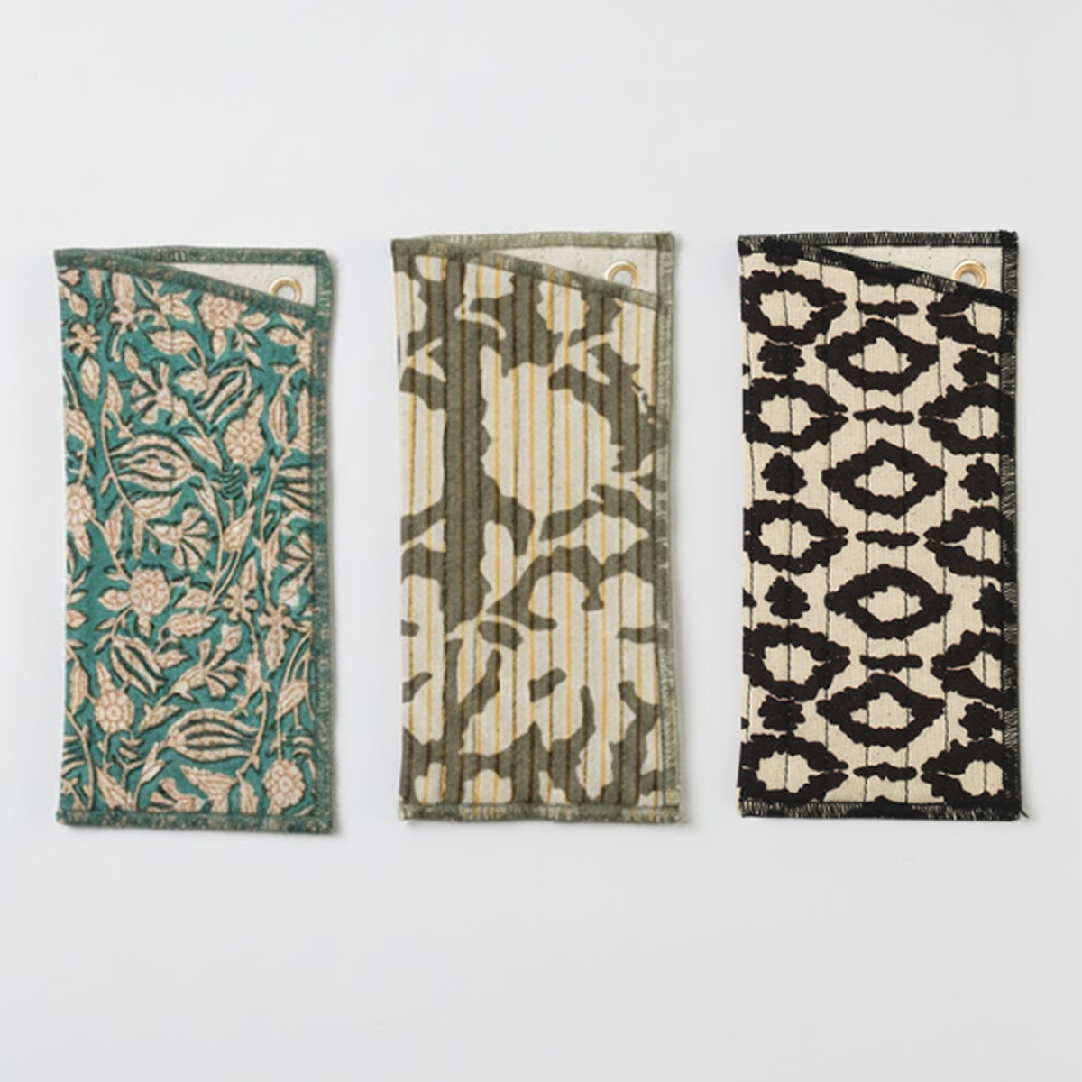 手彫りの木版でプリントされた柔らかなインド綿に、ふっくらとキルティングを施したブロックプリントのポーチシリーズ。