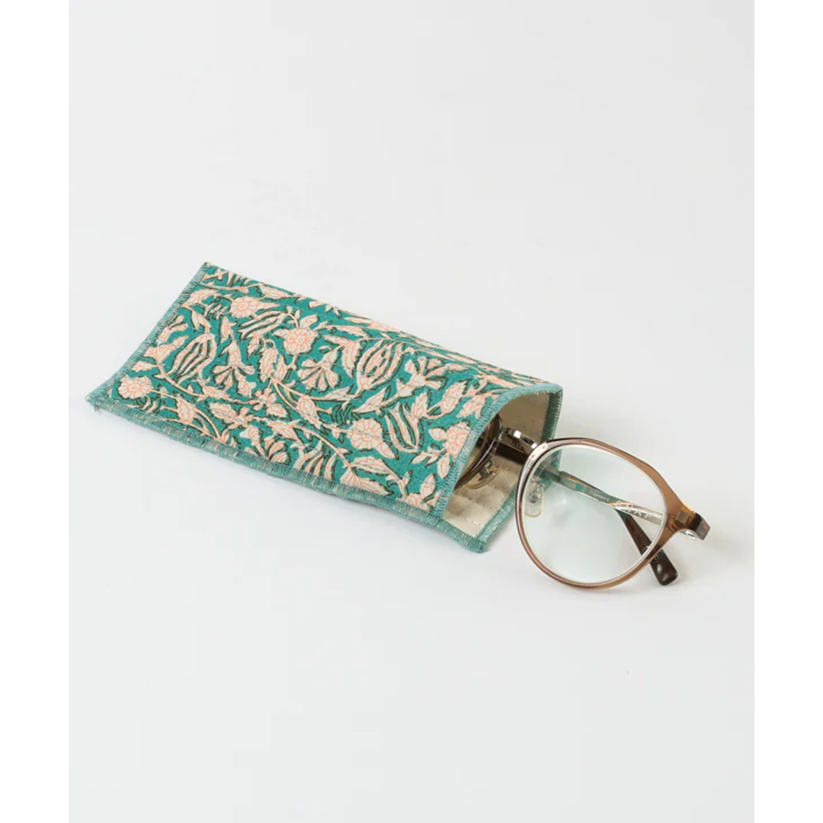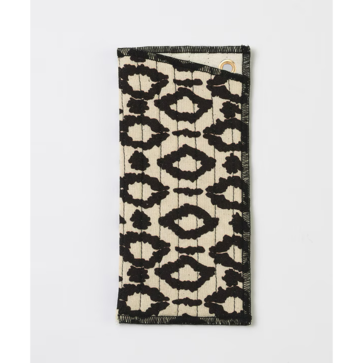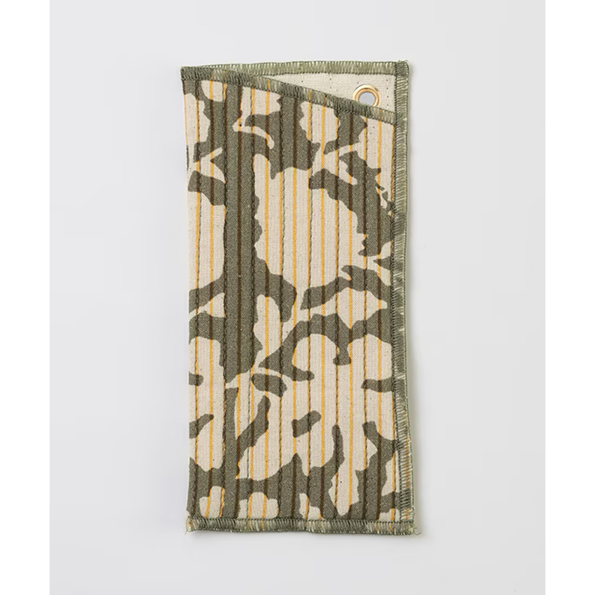 手彫りの木版でプリントされた柔らかなインド綿に、ふっくらとキルティングを施したブロックプリントのポーチシリーズ。