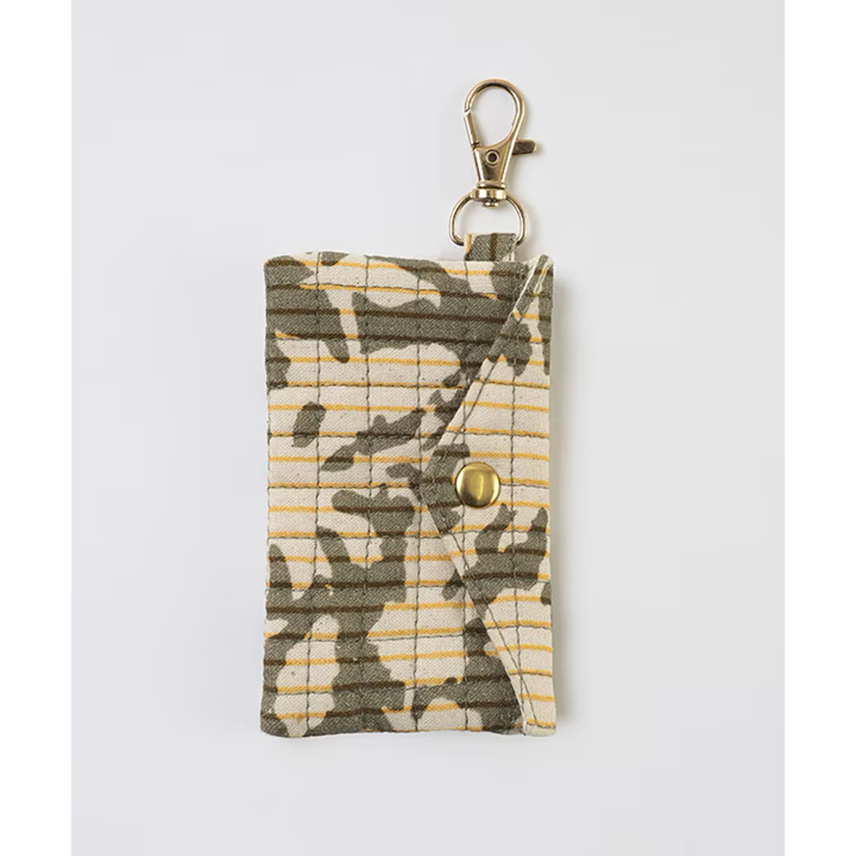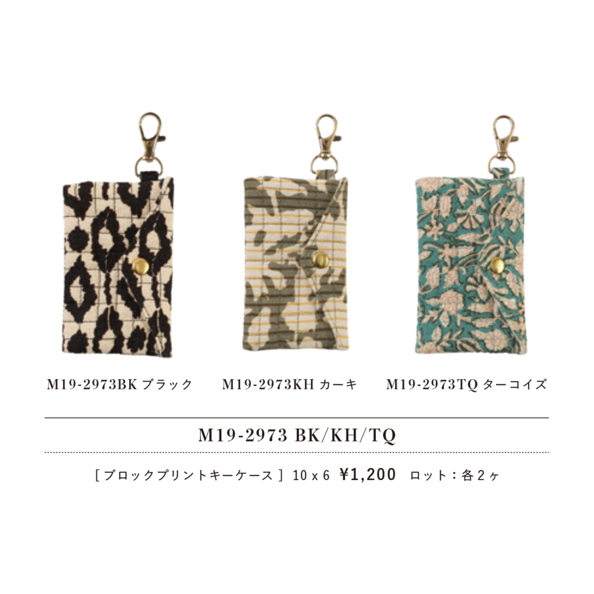 手彫りの木版でプリントされた柔らかなインド綿に、ふっくらとキルティングを施したブロックプリントのポーチシリーズ。