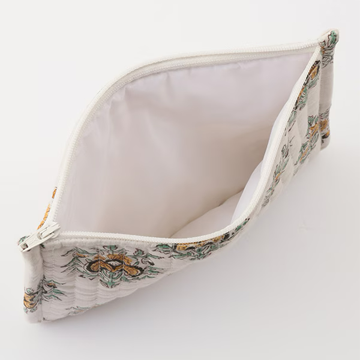 心温まる手仕事の風合いと、キルティングならではの柔らかさが同居する、おしゃれなフラットポーチが登場です。